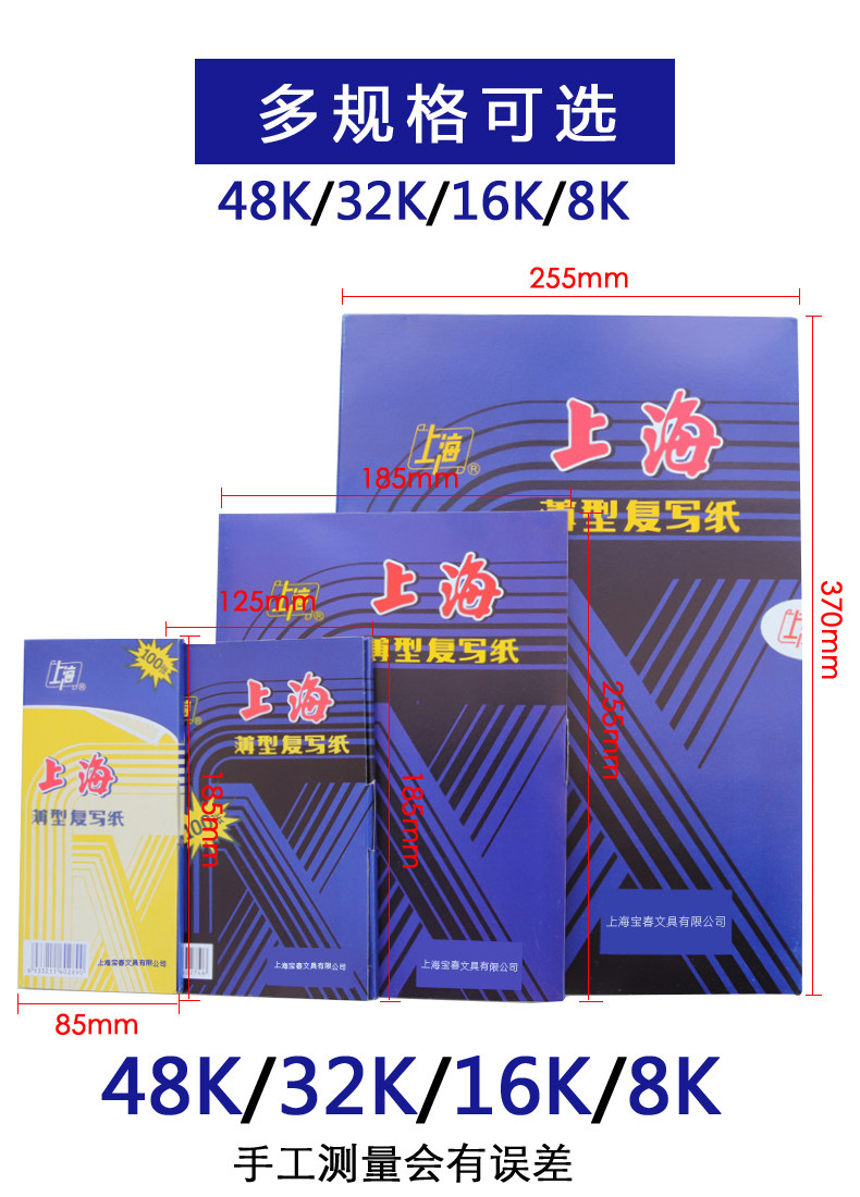 Shanghai Blue Carbon Paper Red 16K Double-Sided Black Carbon Paper 8K Special for Financial Document Filling 32K Transparent Blue Paper 48K Thin Carbon Paper Backing Paper 100 Sheets Blue Printing Paper