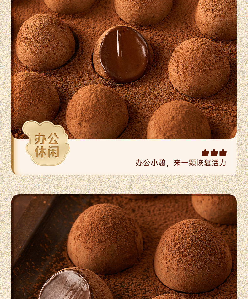 | Food Taste | ãEarly BirdãApproximately 32 Pieces (125g Truffle Chocolate + 125g Free) Total 250G/Box, Only $11.7!,[about 96 Pieces] 250g of Chocolate Truffles, 250g*2, a Total of 250g*3 Boxes Only 29.3&,[Highly Recommended] about 65 Pieces (250g of Chocolate Truffles Get 250g Free) 500G/Box in Total Only 17.53&,[about 130 Pieces] (500g of Chocolate Truffles Get 500g Free) 500g*2 Boxes in Total Only 32.59&,[about 195 Pieces] (500g of Chocolate Truffles Get 500g*2) 3 Boxes of 500g*3 in Total Only 47.65&,[about 260 Pieces] (500g*2 of Chocolate Truffles, 500g*2 Free) 4 Boxes of 500g*4 in Total Only 62.71&,[20 Packs] 58% Dark Chocolate 40g Free 40g Total 80G/Box Only 9.3&,[20 Packs] 70% Dark Chocolate 40g Free 40g Total 80G/Box Only 10.48&,[20 Packs] 100% Dark Chocolate 40g Free 40g Total 80G/Box Only 10.48&,ãEarly Bird SpecialãApproximately 32 Truffles (125g Chocolate Truffles + 125g Free) Total 250G/Box for Only $9.90,[about 96 Pieces] Chocolate Truffles 250g Free 250g*2, Total 250g*3 Boxes Only 24.9,[Highly Recommended] about 65 Pieces (250g of Chocolate Truffles and 250g Free) Total 500G/Box Only 14.9,[about 130 Pieces] (500g of Chocolate Truffles Get 500g Free) 2 Boxes of 500g in Total Only 27.7,[about 195 Pieces] (500g of Chocolate Truffles Get 500g*2) 3 Boxes of 500g*3 in Total Only 40.5,[about 260 Pieces] (250g*4 of Chocolate Truffles, Get 250g*4 Free) 500*4 Boxes in Total Only 53.3,[20 Packs] 58% Dark Chocolate 40g Free 40g Total 80G/Box Only 7.9,[20 Packs] 70% Dark Chocolate 40g Free 40g Total 80G/Box Only 8.9,[20 Packs] 100% Dark Chocolate 40g Free 40g Total 80G/Box Only 8.9 |
