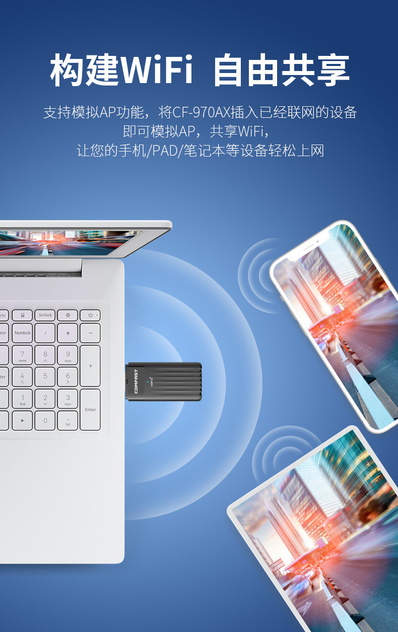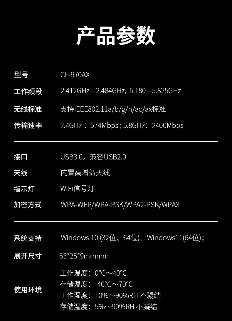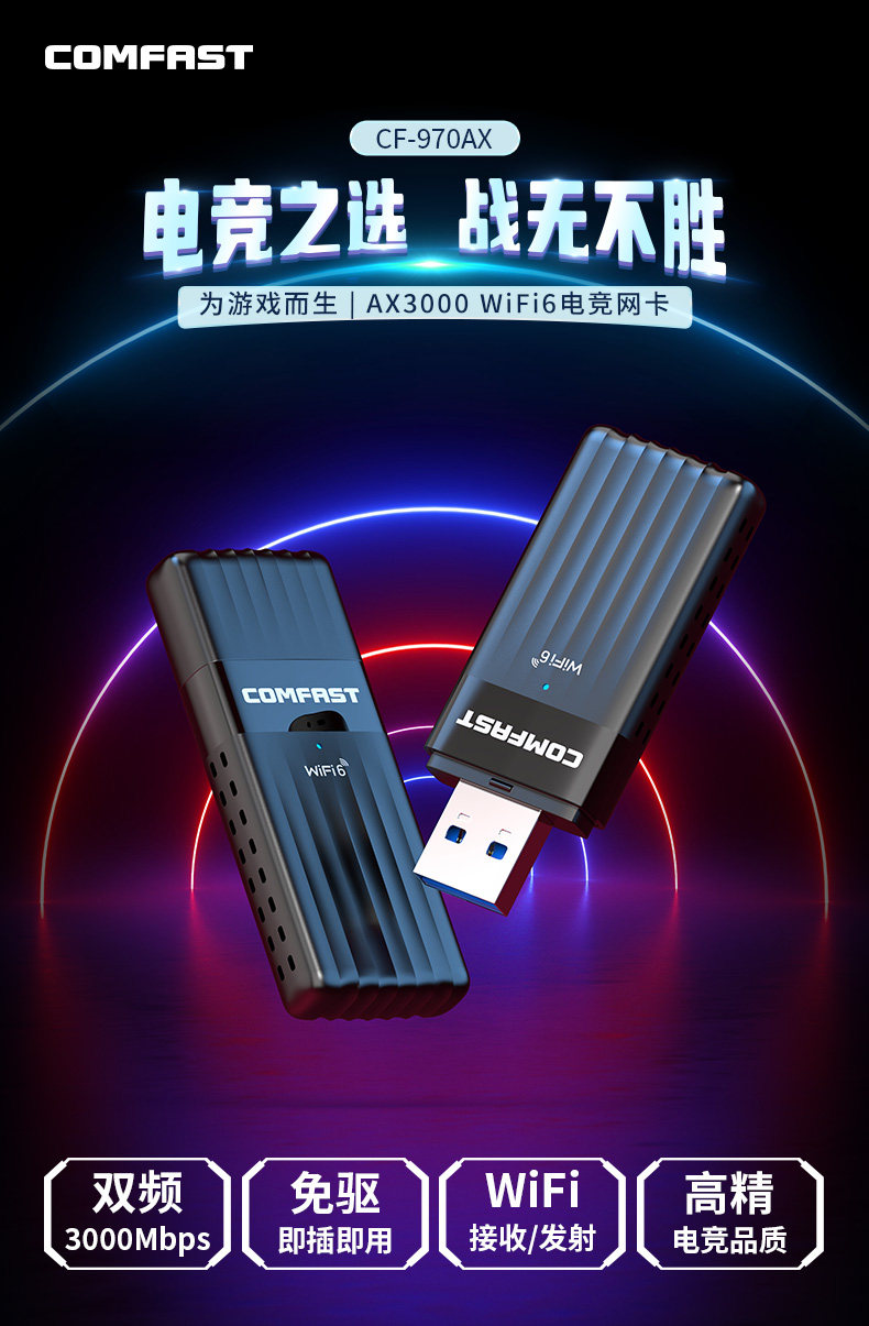 Comfast Cf-970Ax Driver-Free Gaming Wireless Network Card Dual-Band 3000m Desktop Wifi6 Gigabit Computer Laptop USB External 5g High-Power Wifi Receiver Transmitter