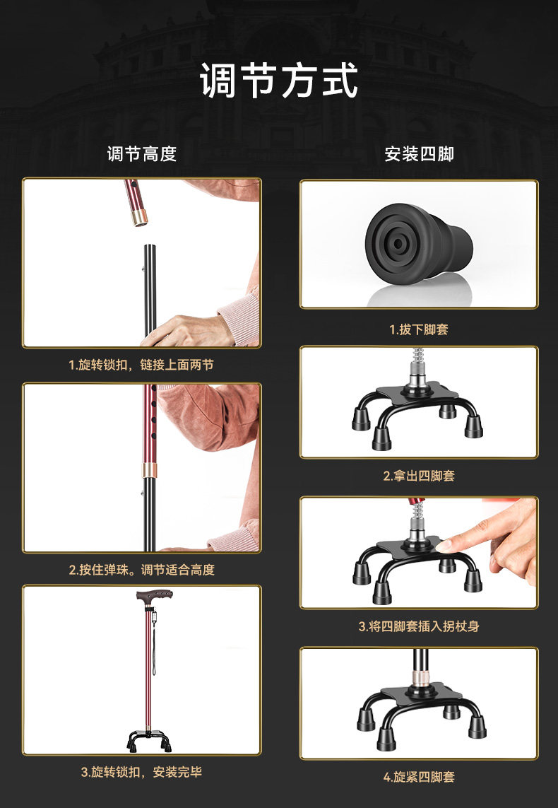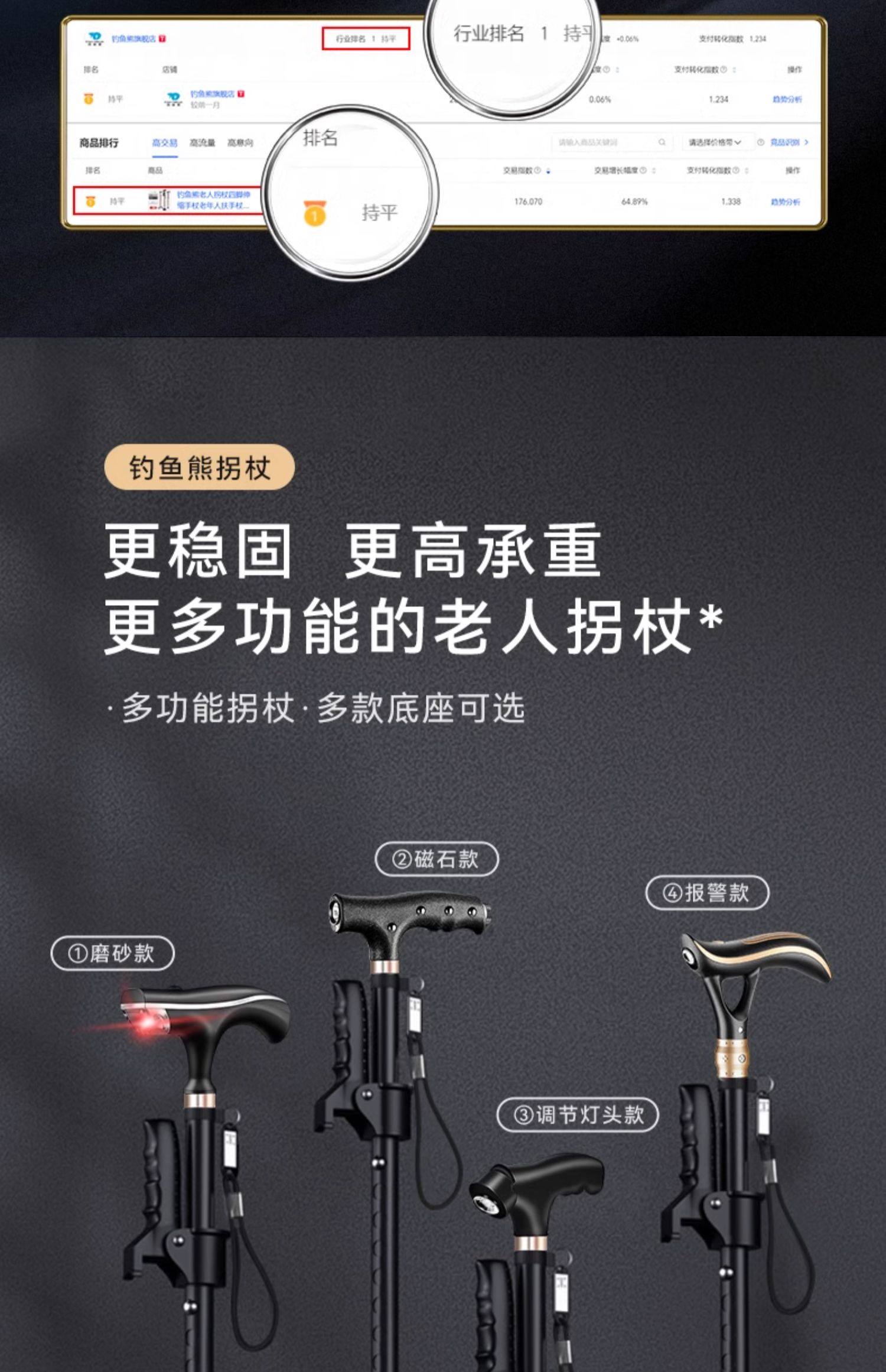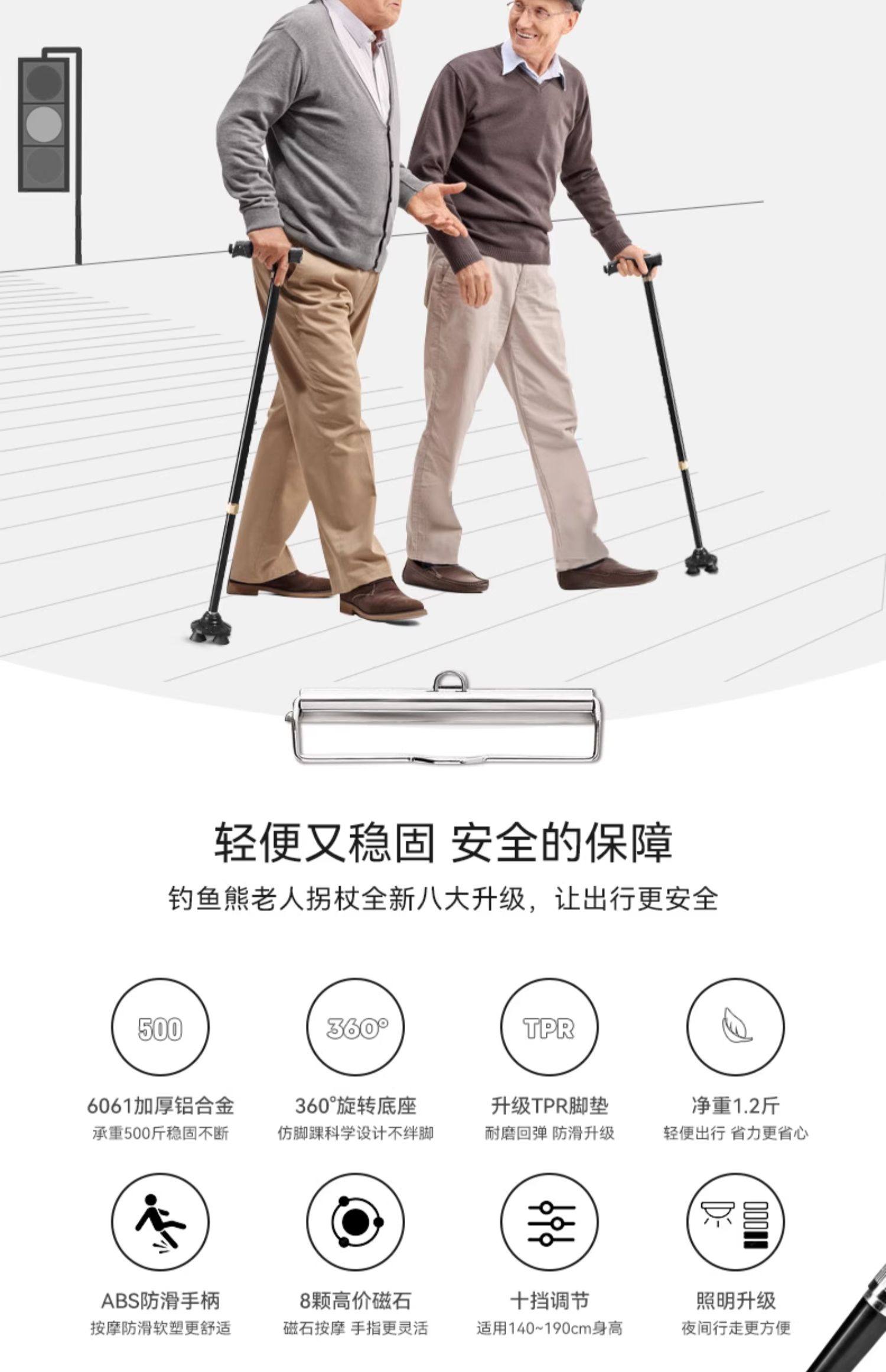 Fishing Bear Elderly Walking Stick Lightweight Non-Slip Zodiac Year Walking Stick Aluminum Alloy Cane Four-Legged Telescopic Walking Stick for Men and Women