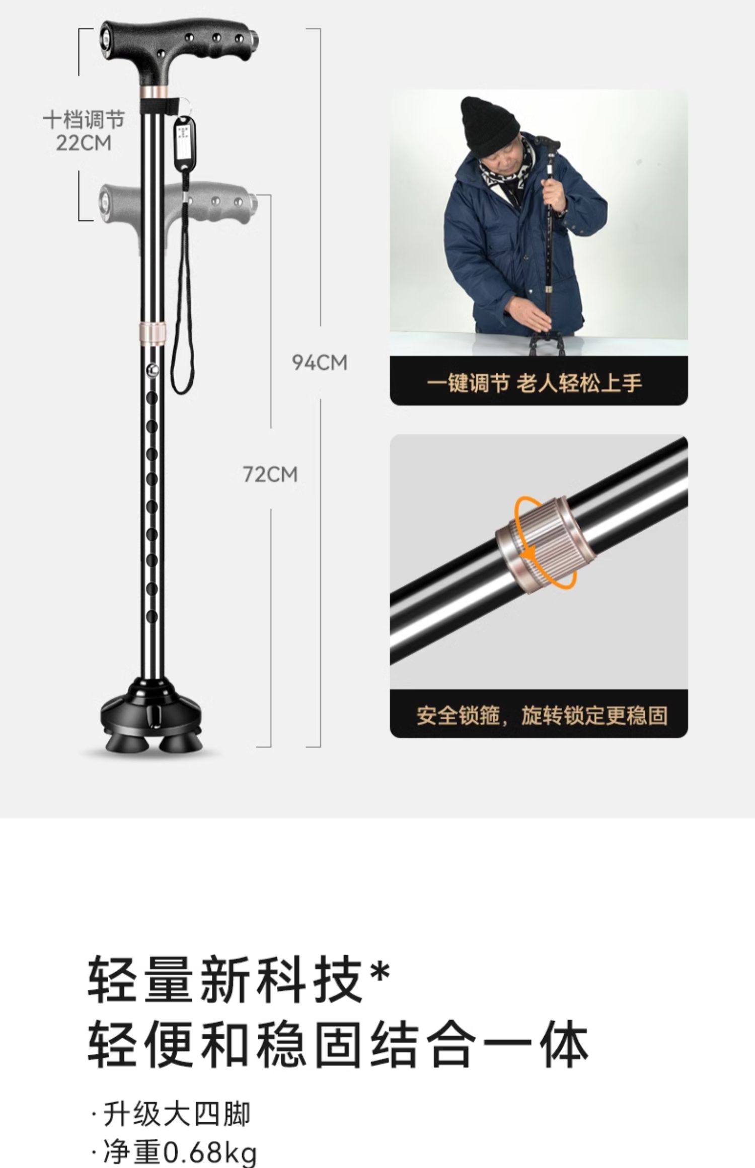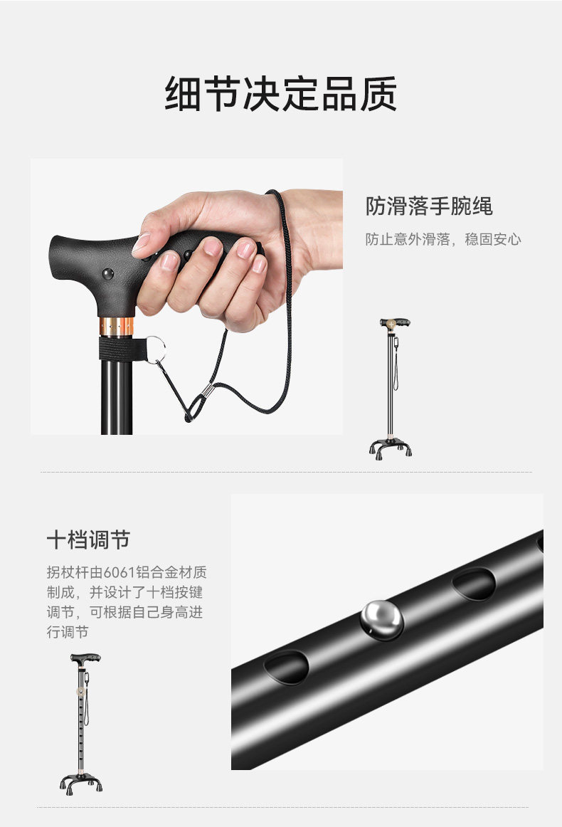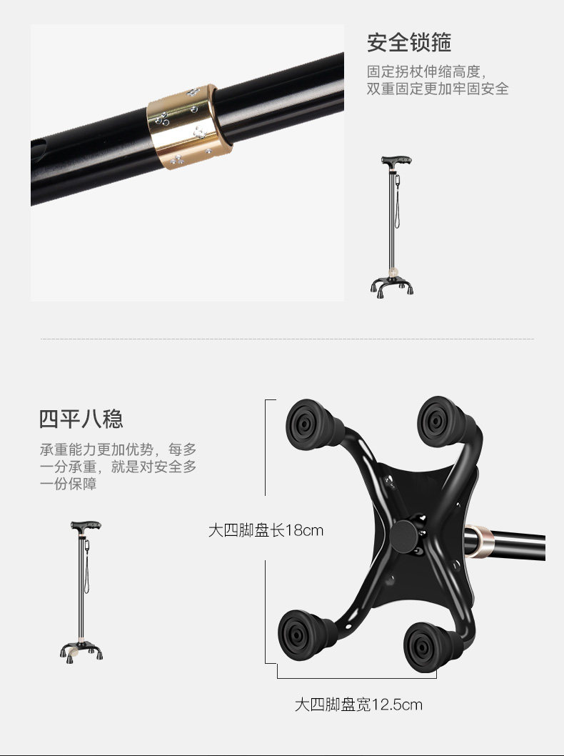 Fishing Bear Elderly Walking Stick Lightweight Non-Slip Zodiac Year Walking Stick Aluminum Alloy Cane Four-Legged Telescopic Walking Stick for Men and Women