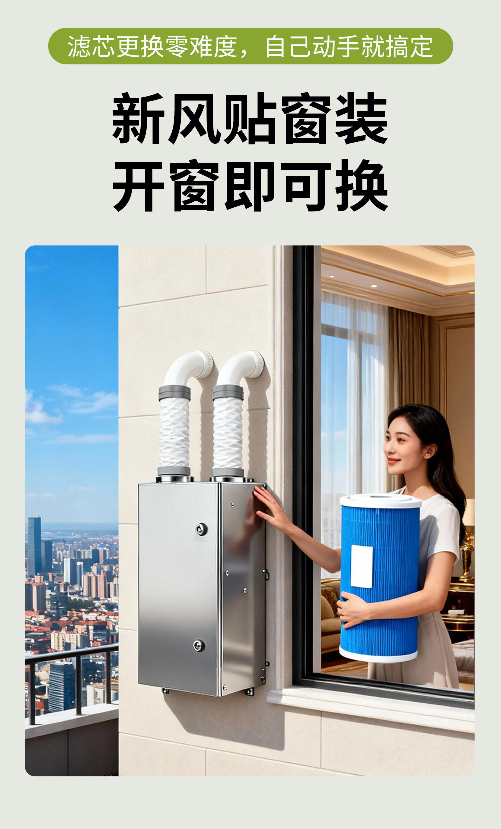 Duoyidian Fresh Air 360 Outdoor Installation Home Wall-Mounted Silent Micro Positive Pressure Fresh Air System