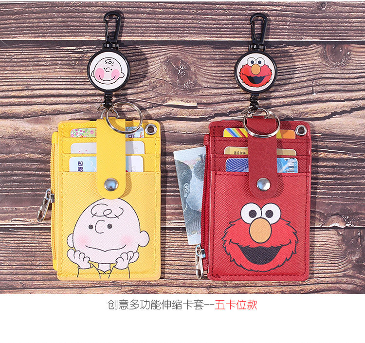 Cartoon Bus Card Holder Keychain with Lanyard Retractable Zipper Student Card Holder Badge Holder Id Card Meal Card Holder