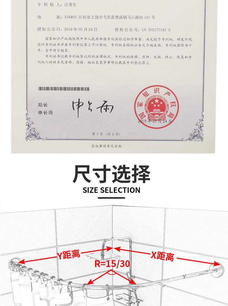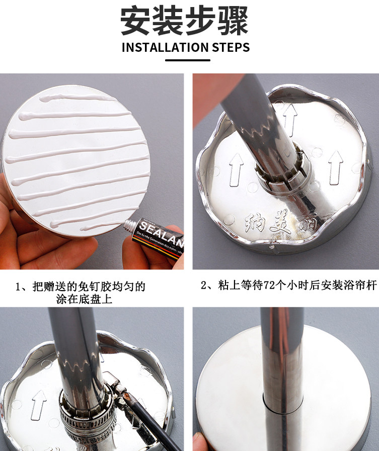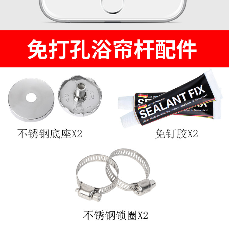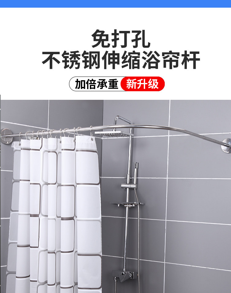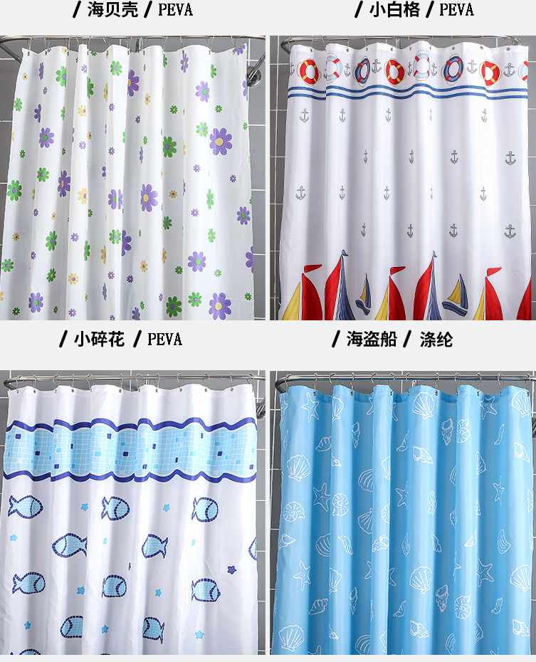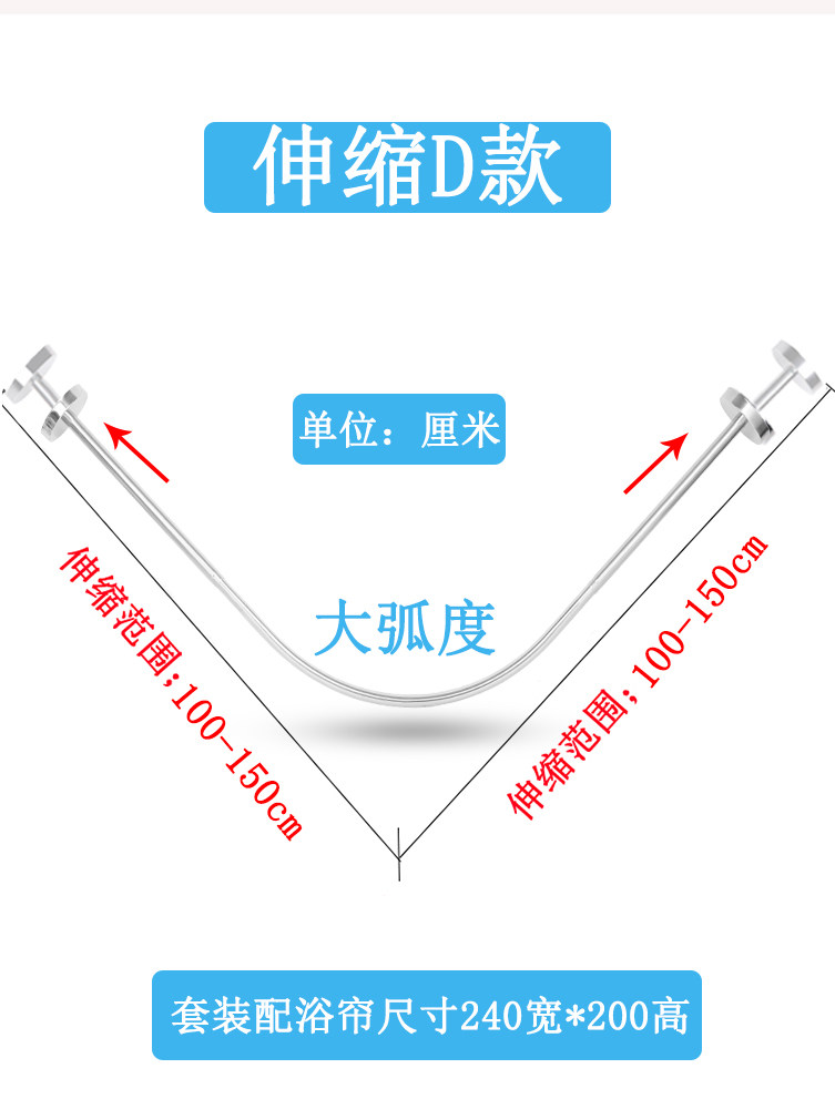 Bathroom Waterproof Shower Curtain Set Without Punching Bathroom Partition Curtain Hanging Curtain Shower Waterproof Cloth U-Shaped L Curved Pole