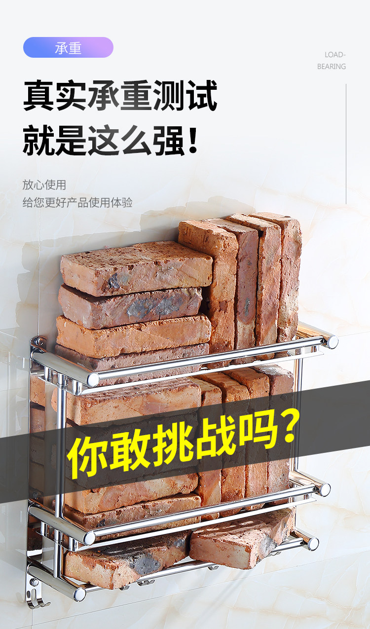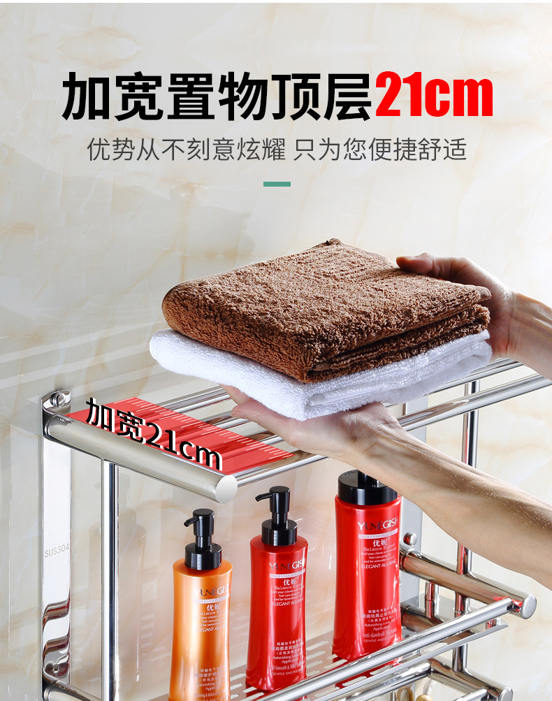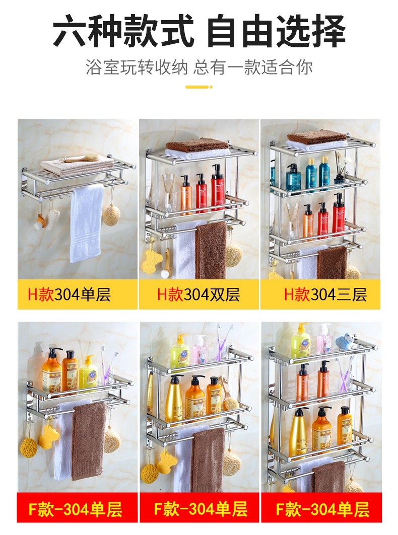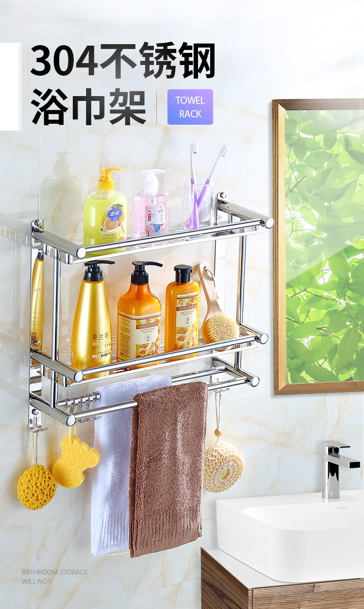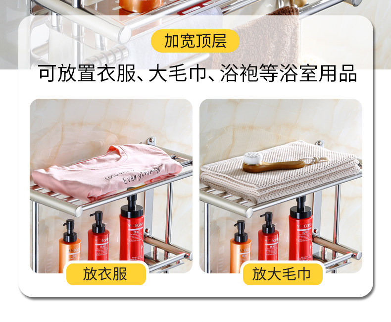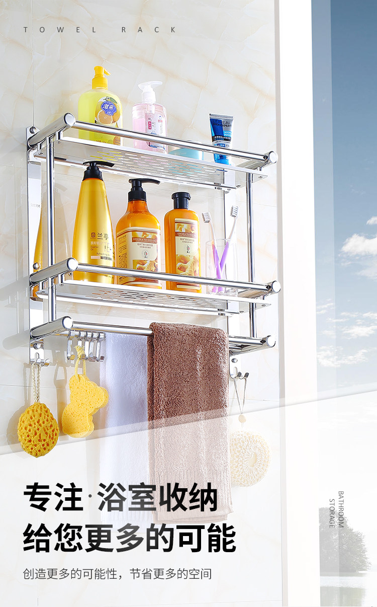 Thickened Bathroom Shelf 304 Stainless Steel Toilet Bathroom Wall-Mounted Three-Layer Storage 2-Layer No-Drill Installation