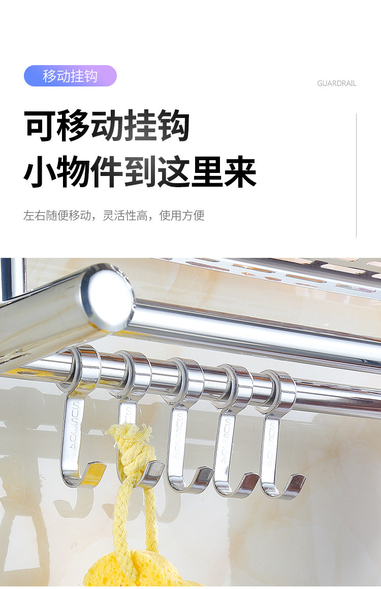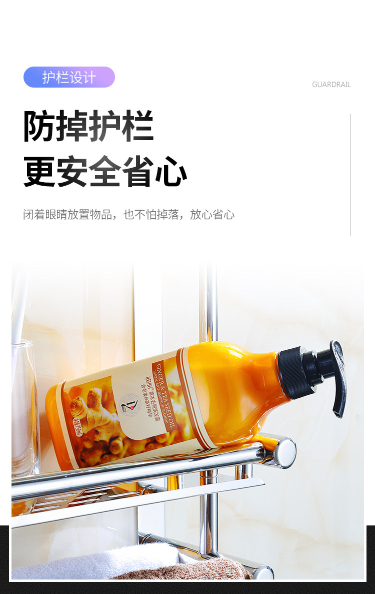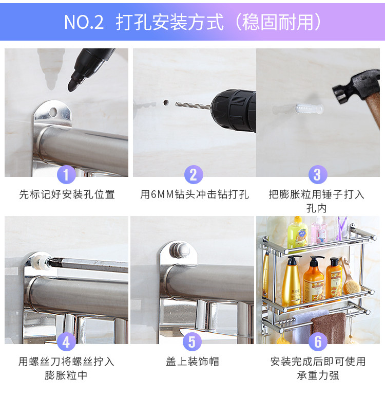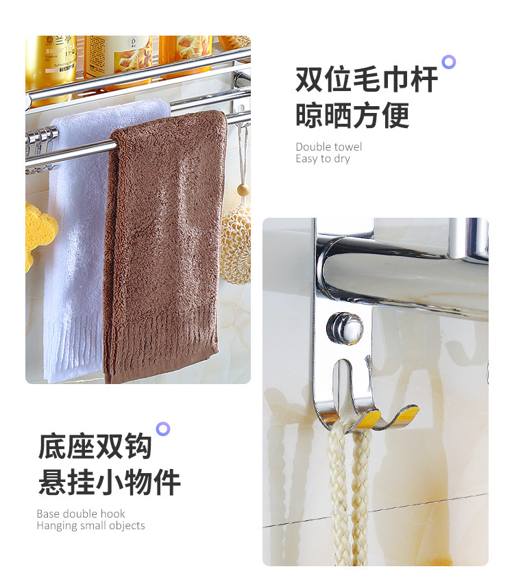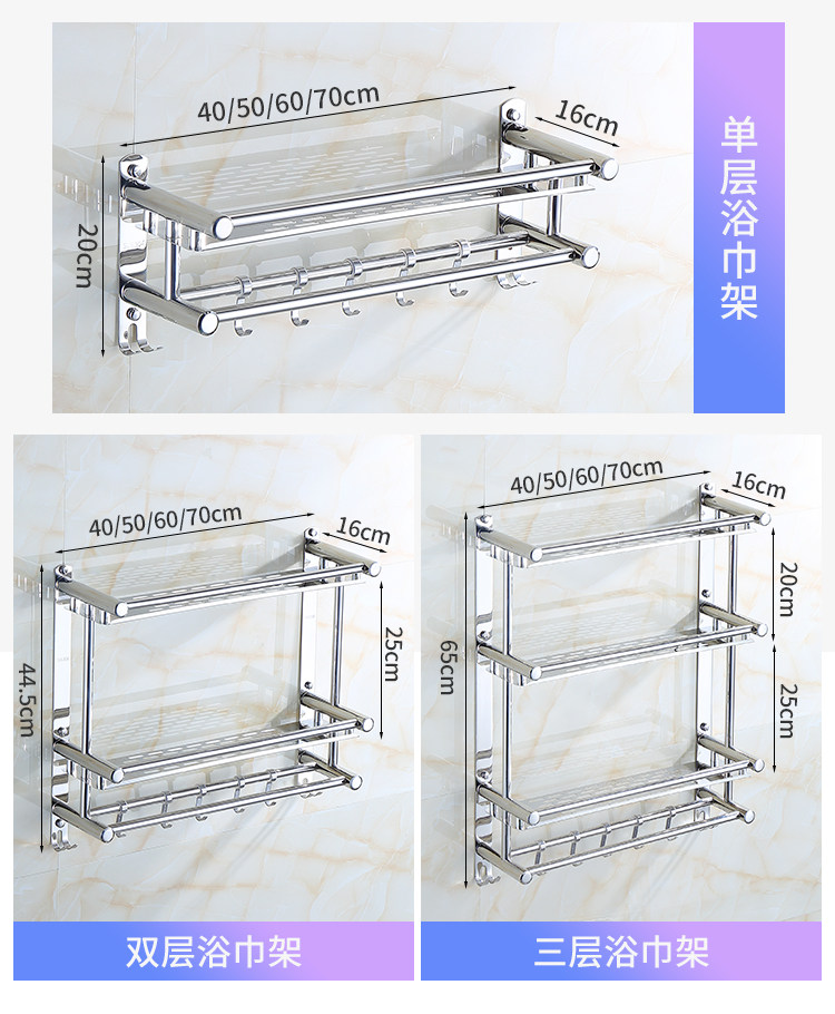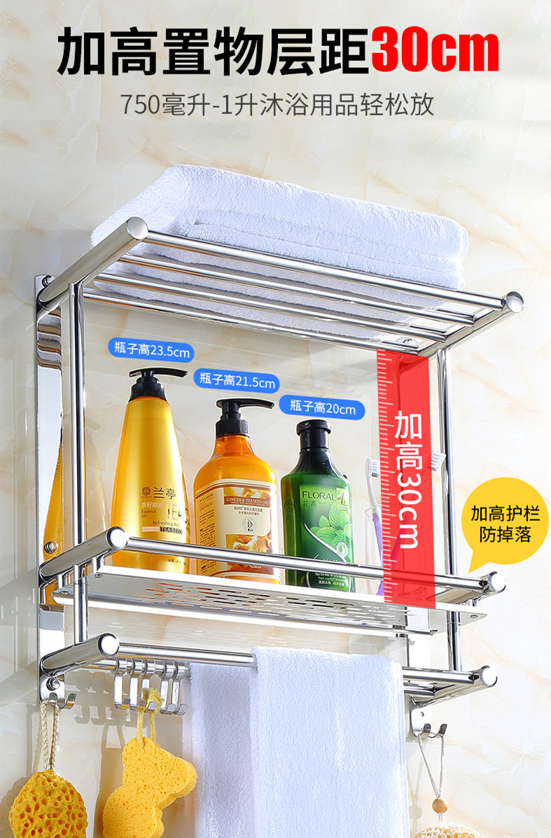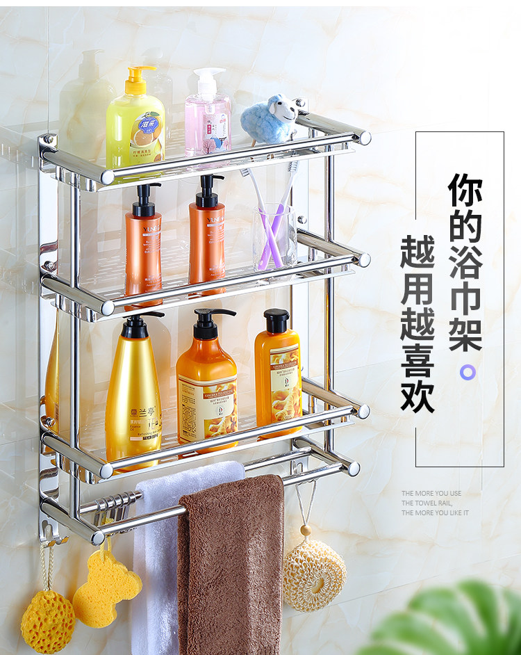 Thickened Bathroom Shelf 304 Stainless Steel Toilet Bathroom Wall-Mounted Three-Layer Storage 2-Layer No-Drill Installation