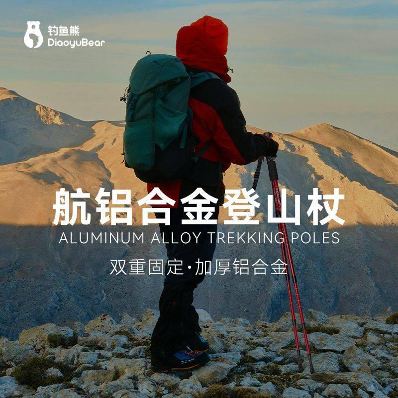 Fishing Bear Ultra-Light Folding Trekking Pole Telescopic Walking Stick for Men and Women Hiking Crutches Outdoor Equipment Multi-Functional Anti-Slip Stick