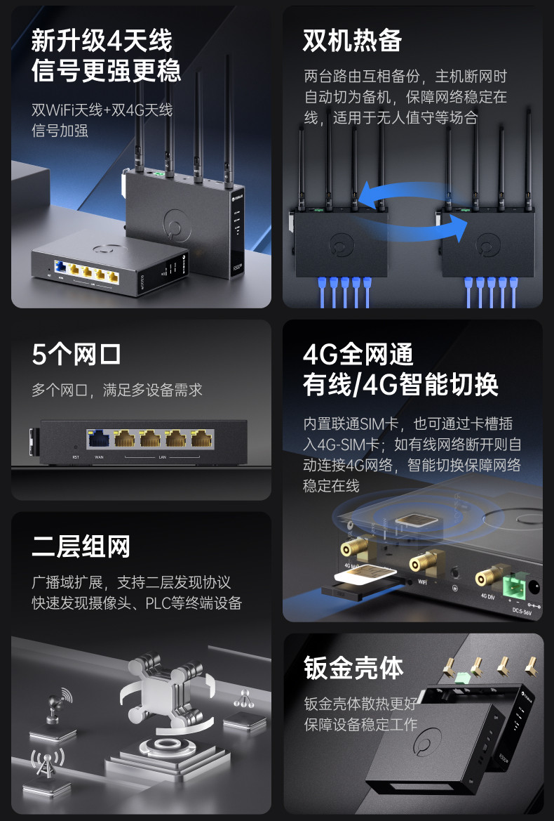 Dandelion 4g Industrial Router R300S Multi-Network Port Rail-Mounted Wireless Cpe Full Network Compatibility Sim Card Data Card Wifi Remote Plc Management Remote Networking Internal Network Penetration 4g to Wired