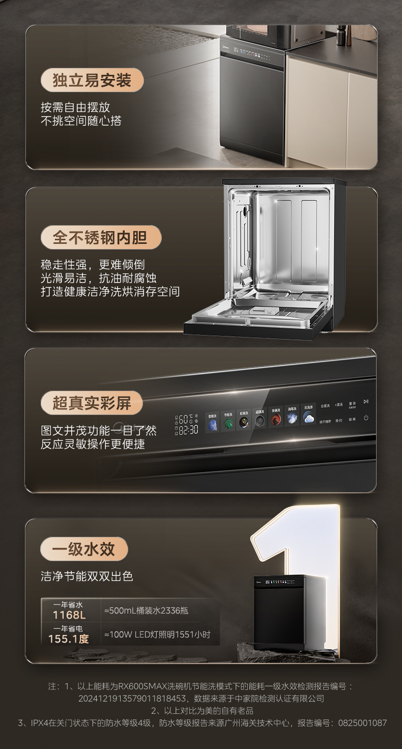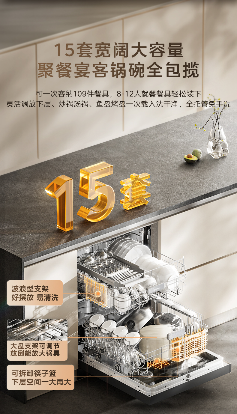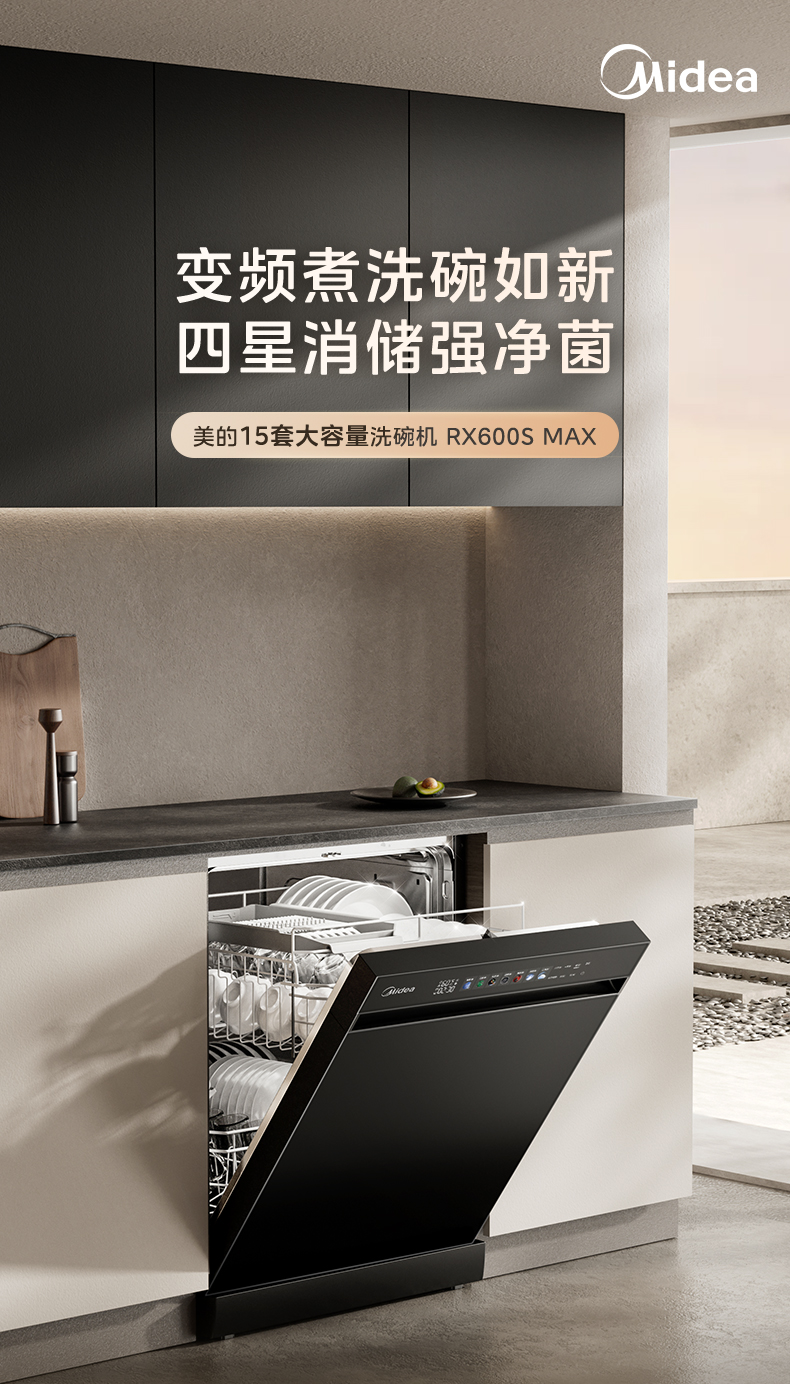 Midea Dishwasher Rx600Smax Household Disinfection, Drying, and Sterilization All-In-One Fully Automatic Built-In 15 Sets Official