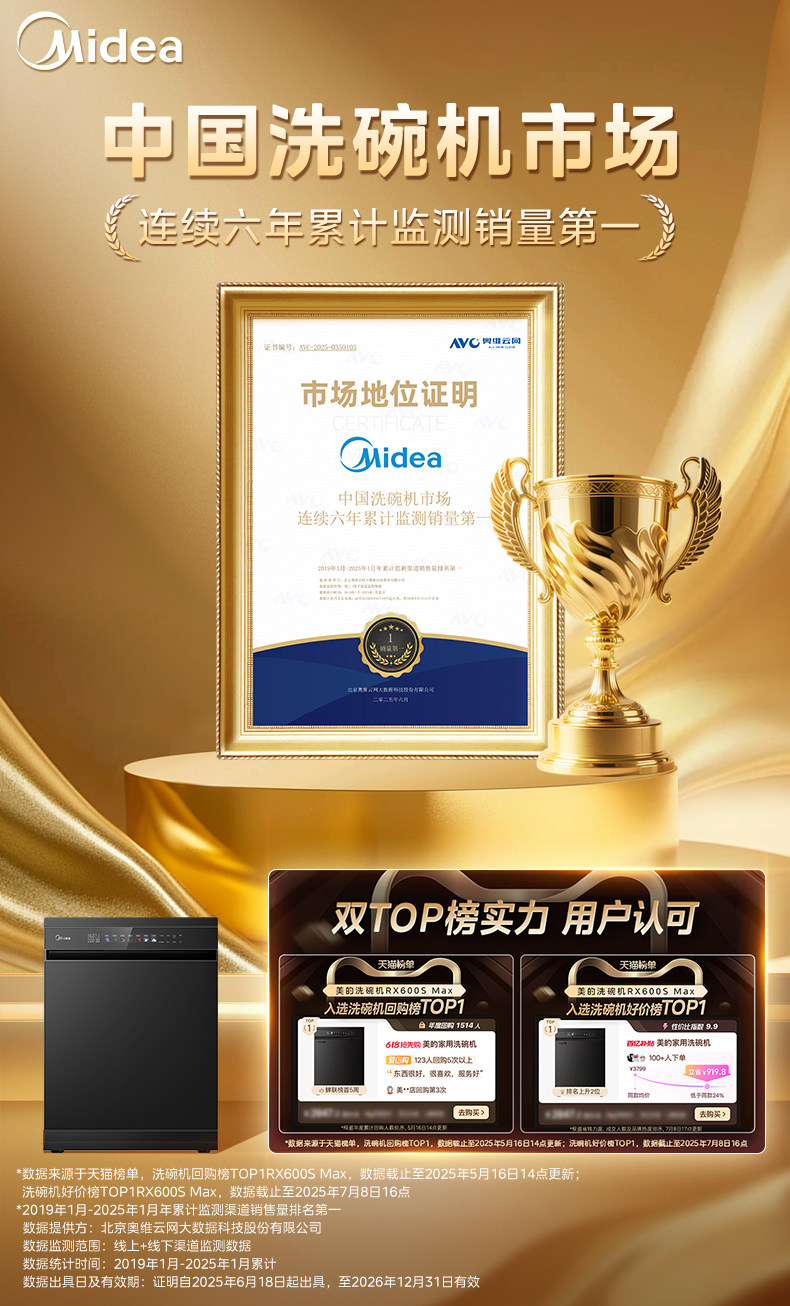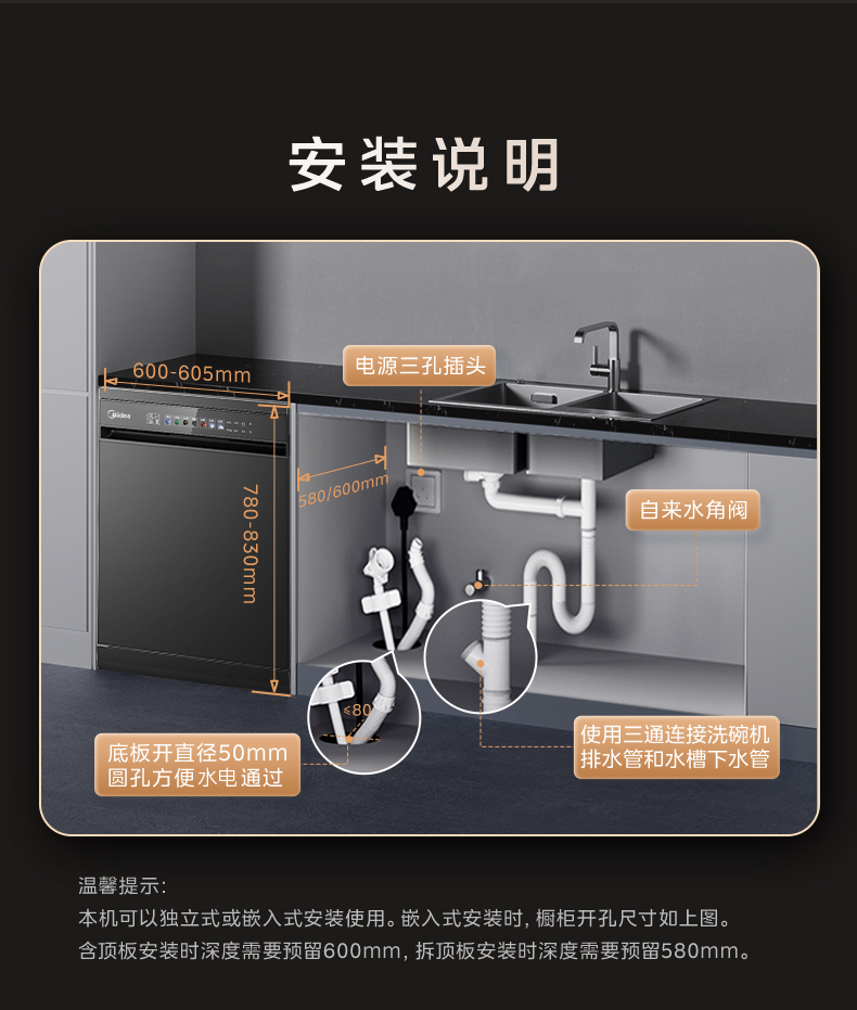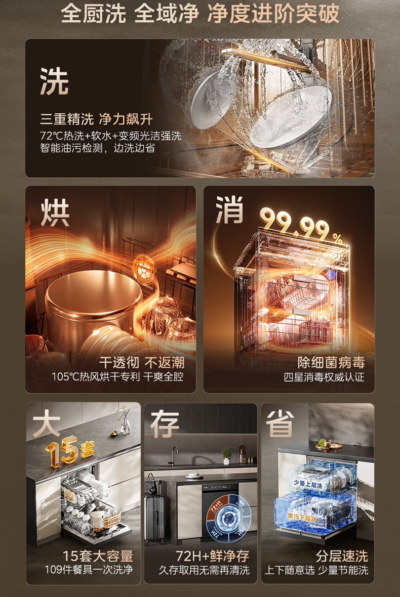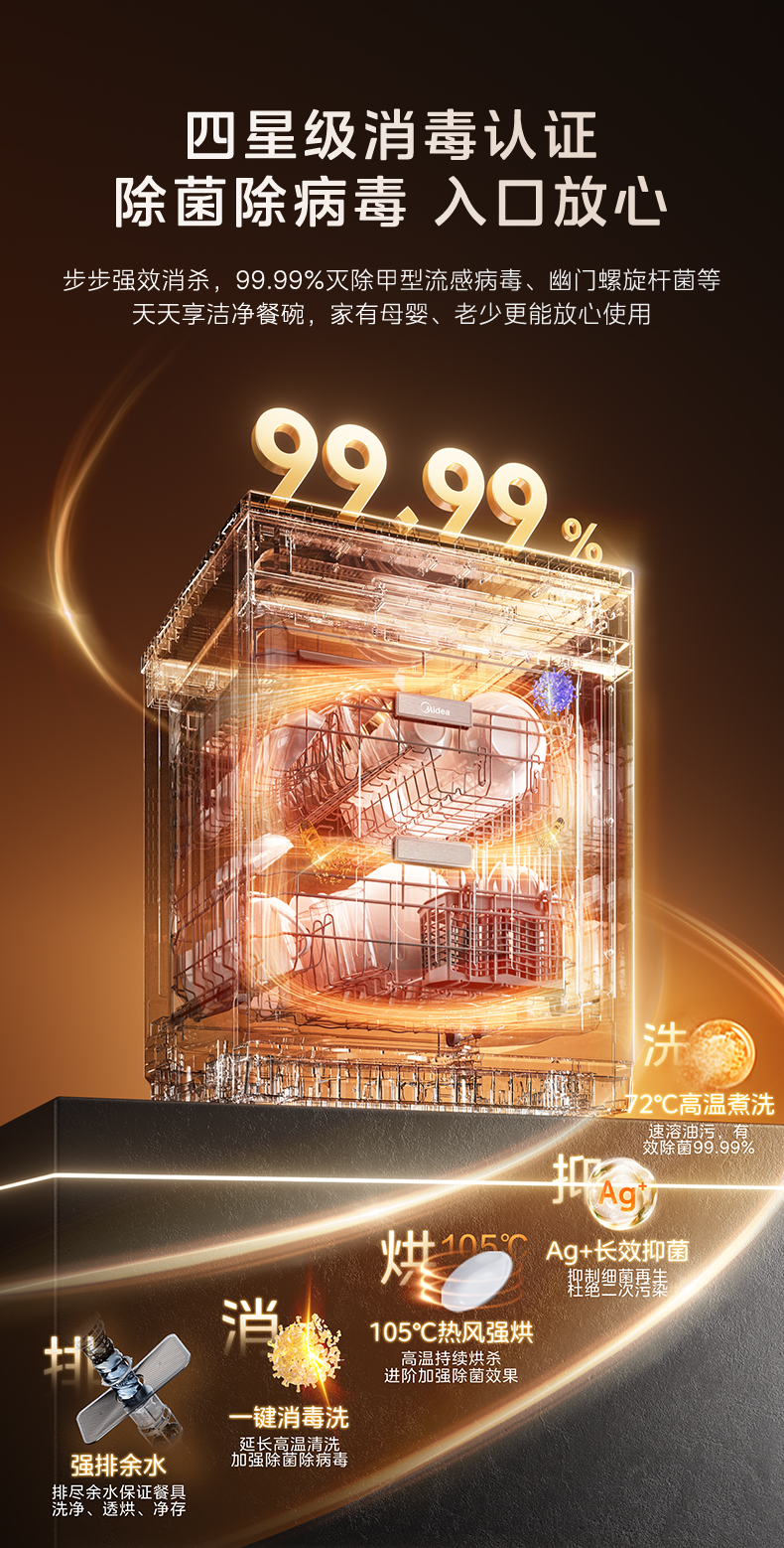 Midea Dishwasher Rx600Smax Household Disinfection, Drying, and Sterilization All-In-One Fully Automatic Built-In 15 Sets Official