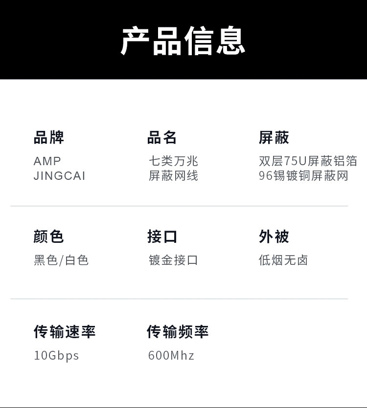 | Color Classification | Category 7A[Low Smoke and Halogen-Free]Double Shield - Black,Category 7A[Low Smoke and Halogen-Free]Double Shield-White,Category 7A[Low Smoke and Halogen-Free]Double Shield - Gray,Category 7A[Low Smoke and Halogen-Free]Double Shield-Red,Category 7A[Low Smoke and Halogen-Free]Double Shield - Orange,Category 7A[Low Smoke and Halogen-Free]Double Shield-Yellow,Category 7A[Low Smoke and Halogen-Free]Double Shield-Green,Category 7A[Low Smoke and Halogen-Free]Double Shielding-Sky Blue,Category 7A[Low Smoke and Halogen-Free]Double Shield-Blue |