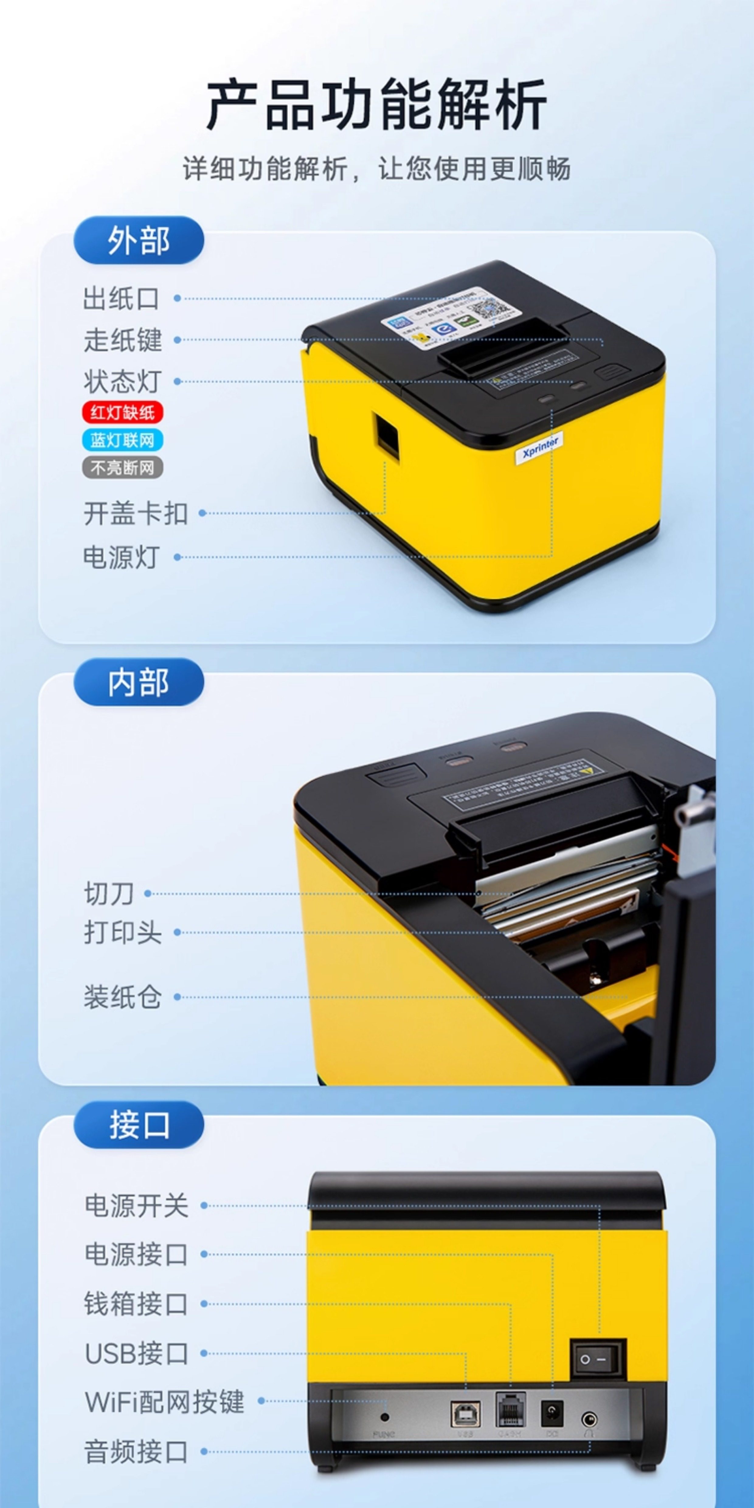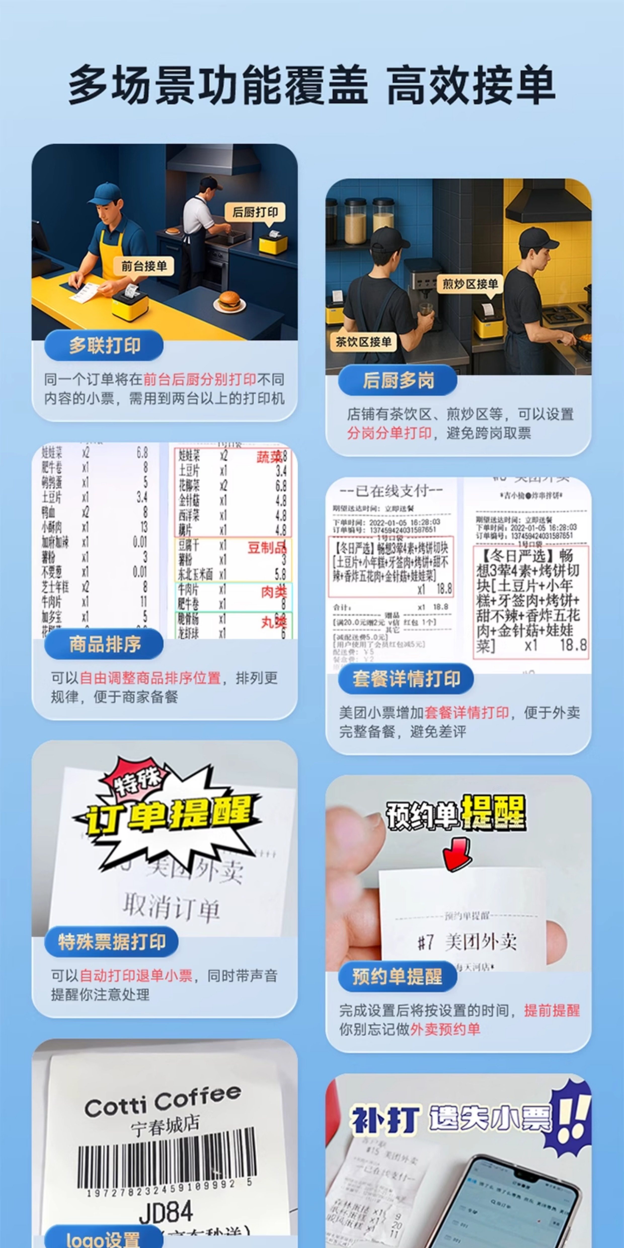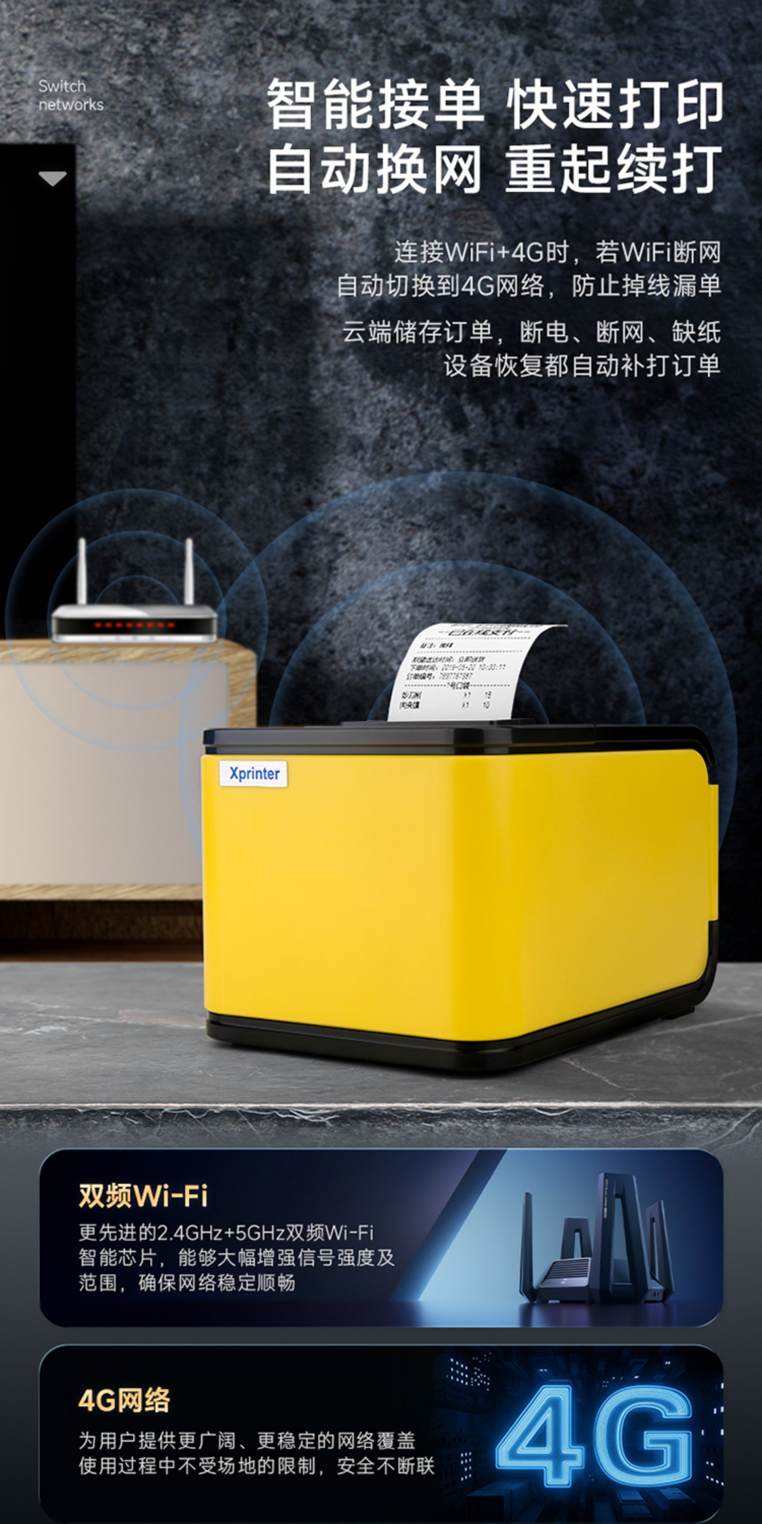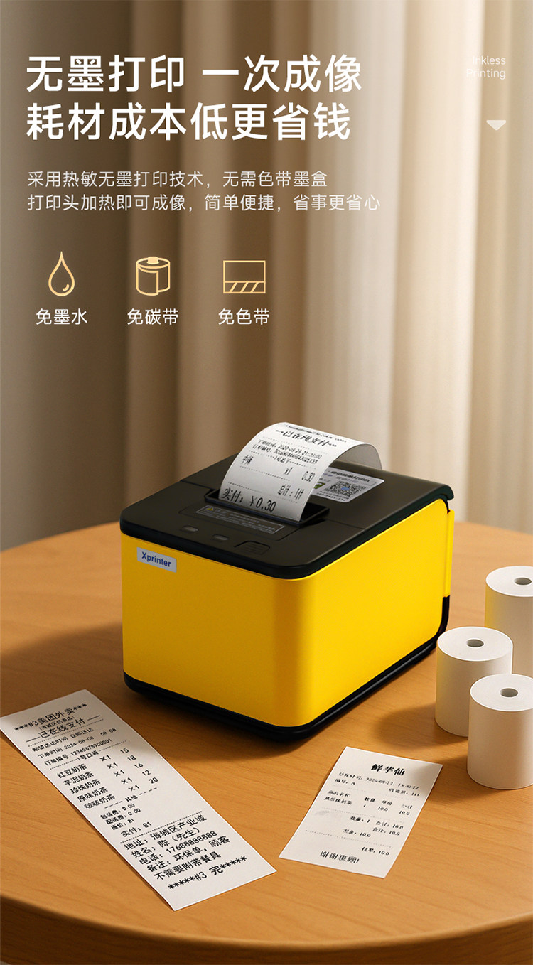 Xinye Takeout Printer with Wifi and Bluetooth, Supports Meituan, Ele.Me, Jd App, Automatically Receives Orders from Multiple Platforms, Cuts Paper, Generates Receipts, Real-Time Voice Order Handling, Thermal Receipt Printer, Taobao Flash Sale Receipt Printer