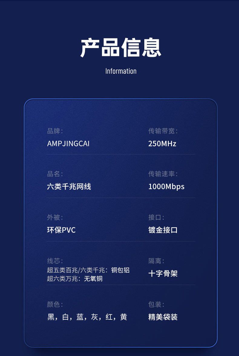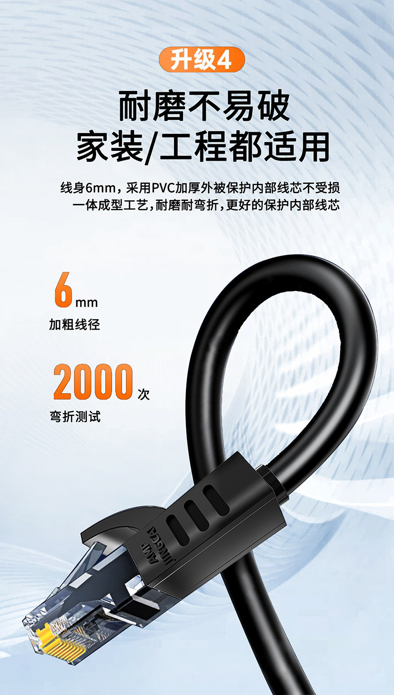 | Color Classification | Black[Category 6 Gigabit]High Speed Without Lag,White[Category 6 Gigabit]High Speed Without Lag,Gray[Category 6 Gigabit]High Speed Without Lag,Blue[Category 6 Gigabit]High Speed Without Lag,Yellow[Category 6 Gigabit]High Speed Without Lag,Red[Category 6 Gigabit]High Speed Without Lag,Green[Category 6 Gigabit]High Speed Without Lag,Orange[Category 6 Gigabit]High Speed Without Lag,Black Oxygen-Free Copper[Category 6A 10 Gigabit]The Network Is Faster,White Oxygen-Free Copper[Category 6A 10 Gigabit]The Network Is Faster,Gray Oxygen-Free Copper[Category 6A 10 Gigabit]The Network Is Faster,Sky Blue Oxygen-Free Copper[Category 6A 10 Gigabit]The Network Is Faster,Blue Oxygen-Free Copper[Category 6A 10 Gigabit]The Network Is Faster,Black[Category 5E 100Mbps]Stable Transmission,White[Category 5E 100Mbps]Stable Transmission,[Category 7 10 Gigabit Double Shielding]Light Speed Transmission--Black,[Category 7 10 Gigabit Double Shielding]Light Speed Transmission--White,Double Shielding[Category 8 10 Gigabit]40Gbps Light Speed Transmission--Black,Double Shielding[Category 8 10 Gigabit]40Gbps Light Speed Transmission--White |