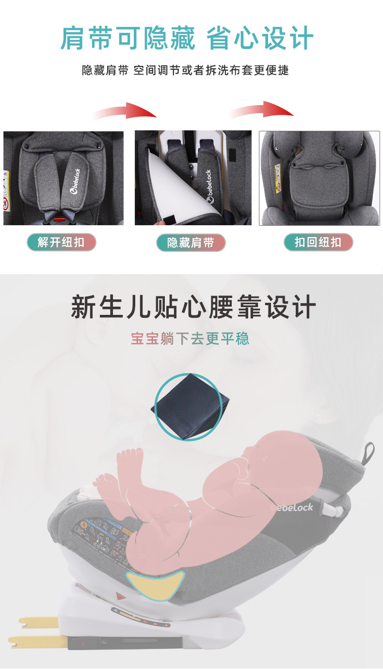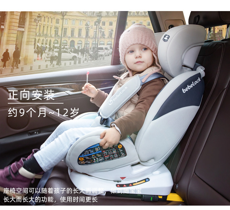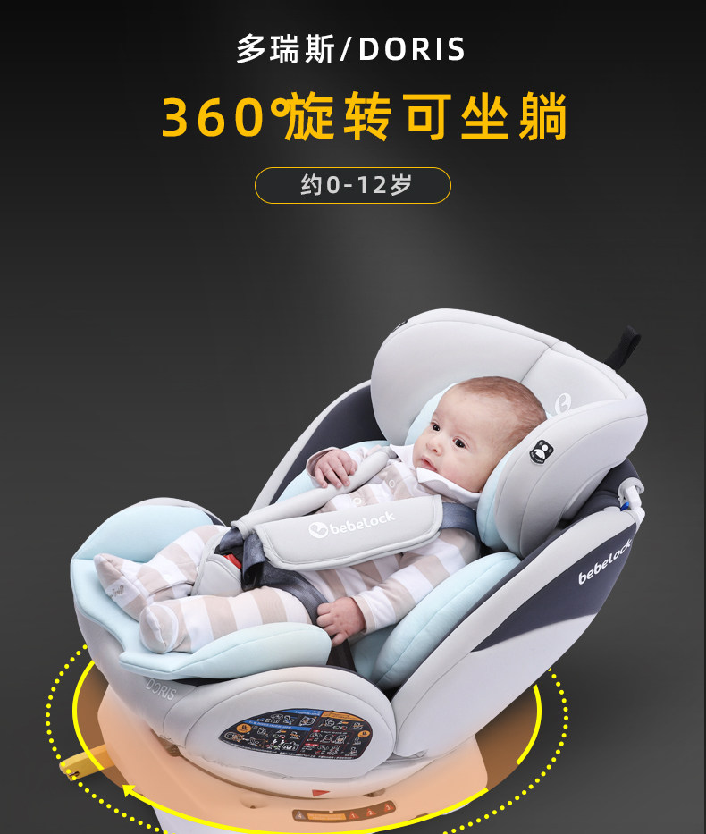 Bebelock Kids Safety Seat for Cars, Suitable for Babies Aged 0-4-12 Years, 360-Degree Rotation, Can Sit and Lie down