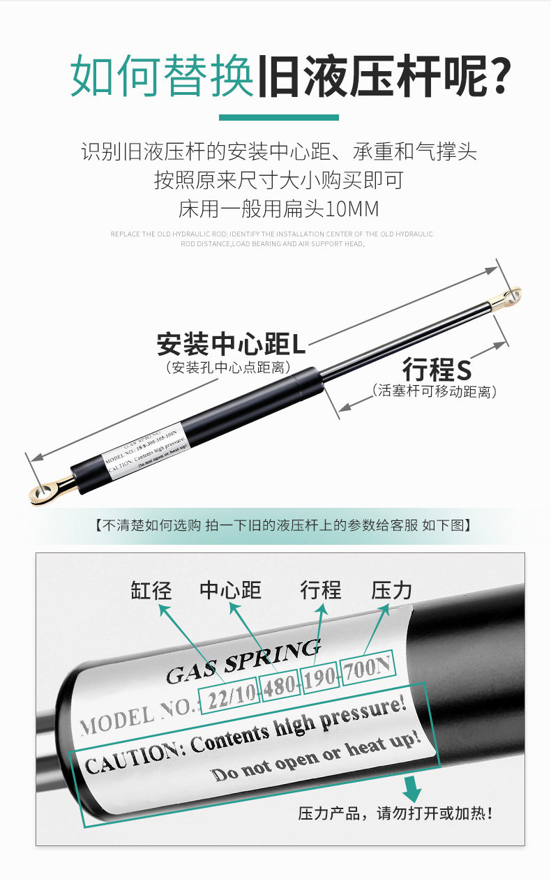 Hydraulic Strut Gas Spring Hydraulic Rod Support Rod for Bed Air Pressure Strut Skylight Hydraulic Support Rod Small Size