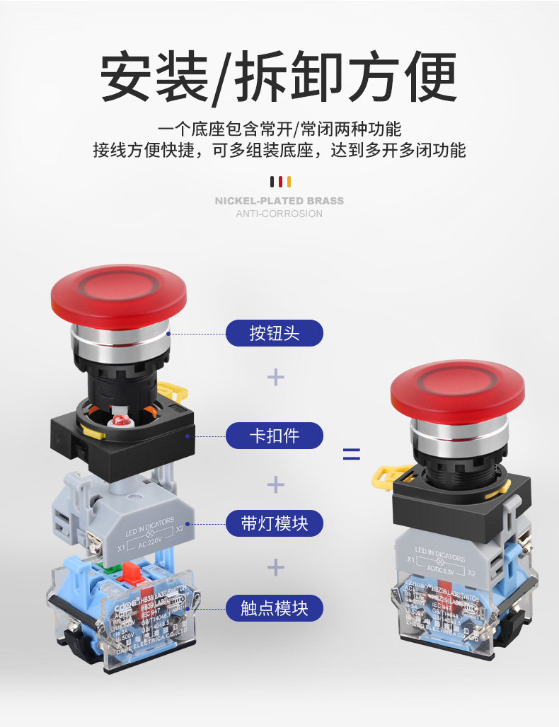 | Color Classification | [New 20A]Reset 22mm Metal Mushroom Head Green 1 Open 1 Closed,[10A]22mm Mushroom Button Kb Reset Without Light Green,[10A]22mm Mushroom Button Kb Self-Locking Without Light Red,[10A]22mm Mushroom Button Kb Self-Locking Without Light Green,[10A]22mm Mushroom Button Kb Reset with Light Red,[10A]22mm Mushroom Button Kb Self-Locking with Light Green,[10A]Np2 Mushroom Head--Reset 1 Normally Open--Red Without Light,[10A]Np2 Mushroom Head--Reset 1 Normally Open--Red Ac220V with Light,[10A]Np2 Mushroom Head--Reset 1 Normally Open--Green Ac220V with Light,[10A]Np2 Mushroom Head--Self-Locking 1 Normally Open--Red Without Light,[10A]Np2 Mushroom Head--Self-Locking 1 Normally Open--Green Without Light,[10A]Np2 Mushroom Head--Self-Locking 1 Normally Open--Red Ac220V with Light,[10A]Np2 Mushroom Head--Self-Locking 1 Normally Open--Green Ac220V with Light |