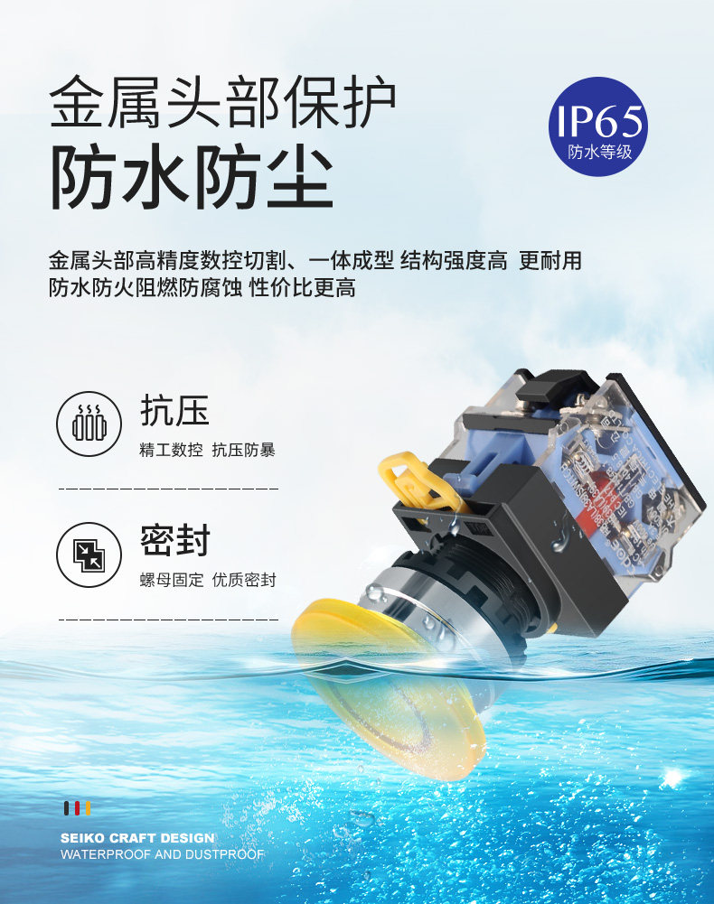 22mm Mushroom Head Button Switch Metal Protection Start Stop Self-Locking Reset Button Waterproof and Dustproof 220V