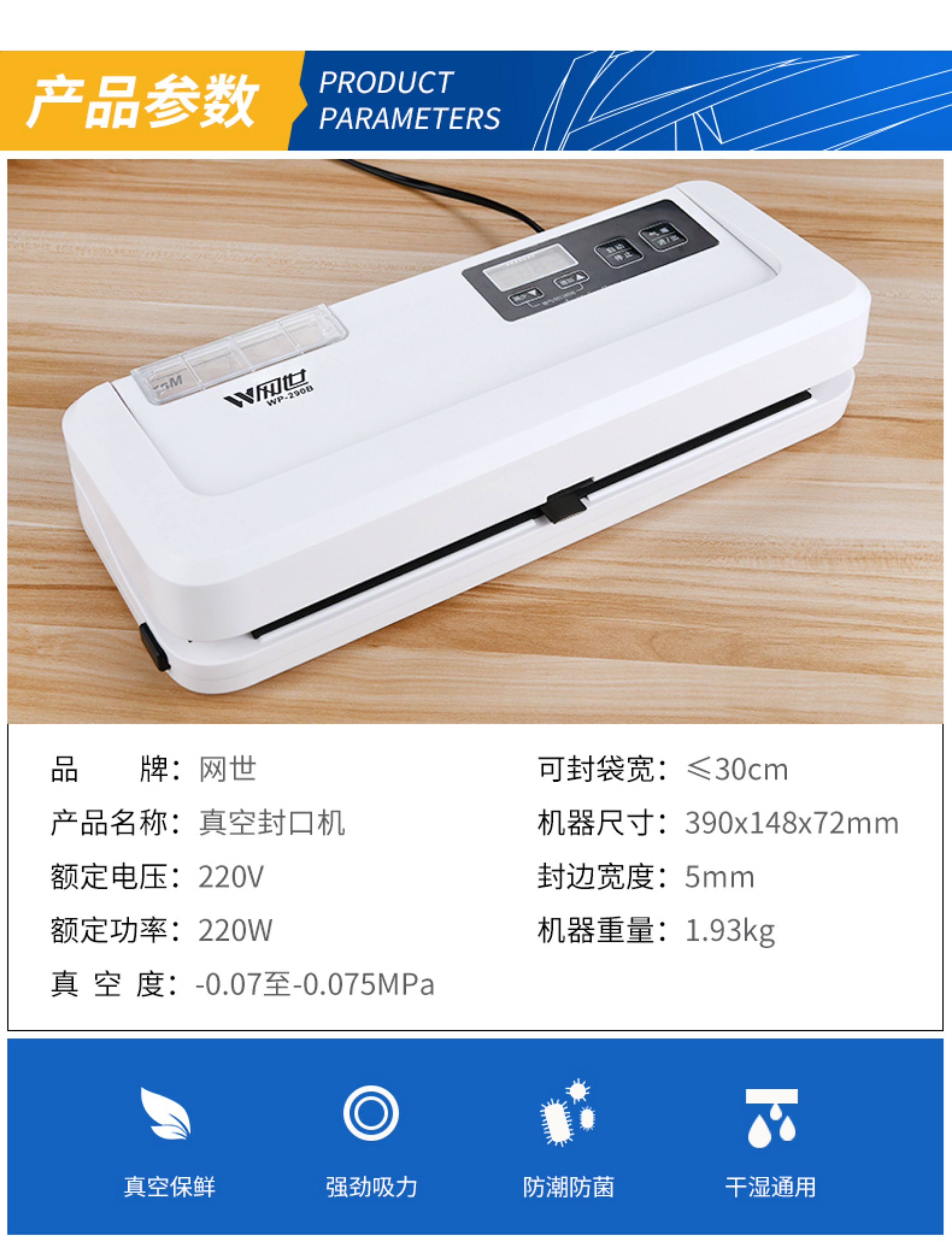 | Color Classification | [Vacuum Machine]/Drawing Texture Bag/W3310/White,[Vacuum Machine]/Drawing Texture Bag/W3310/Black,[Vacuum Machine]/Pattern Bag/W-61/Large Suction + Single Seal,[Vacuum Machine]/Pattern Bag/W-63/Large Suction + Double Sealing,[Hand-Pressed Heat Sealing Machine] Sealable Width: 20cm,[Hand-Pressed Heat Sealing Machine] Sealable Width: 40cm,[Commercial Vacuum Machine] Can Pump Glossy Bags/Wp-280/White,【Commercial Vacuum Sealer】Vacuum Seals Glossy Bags / Wp-280 / Black & White |
