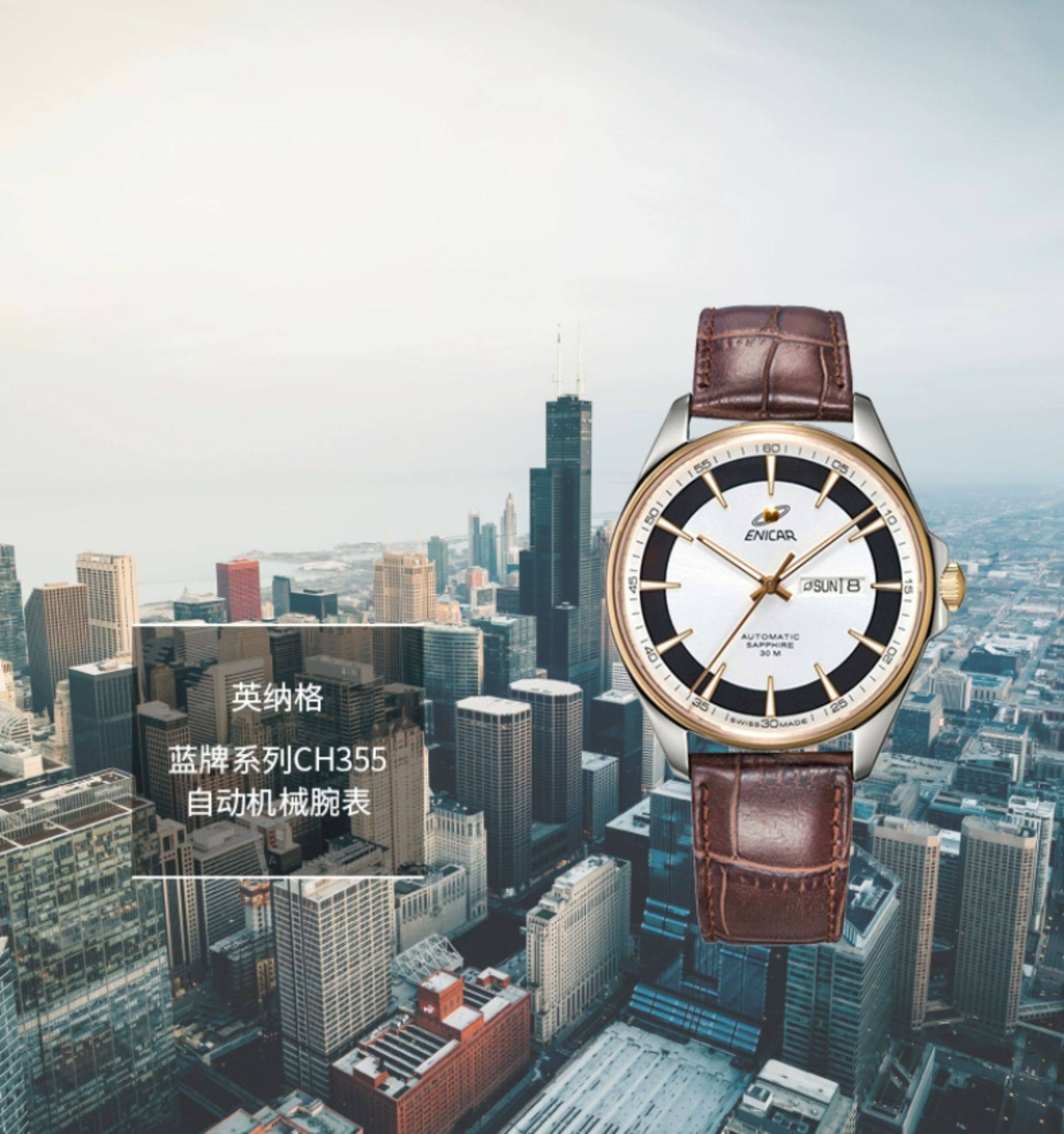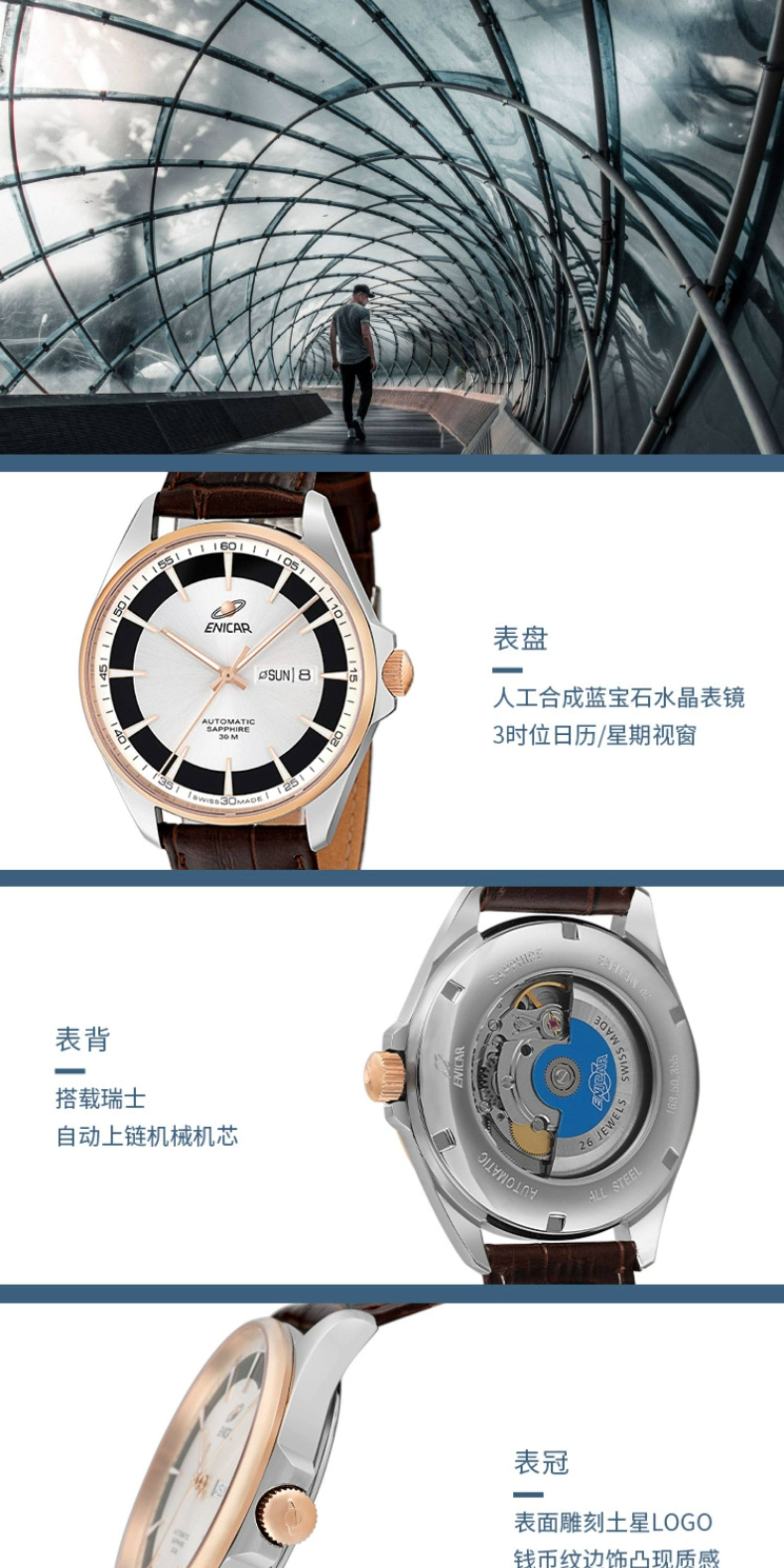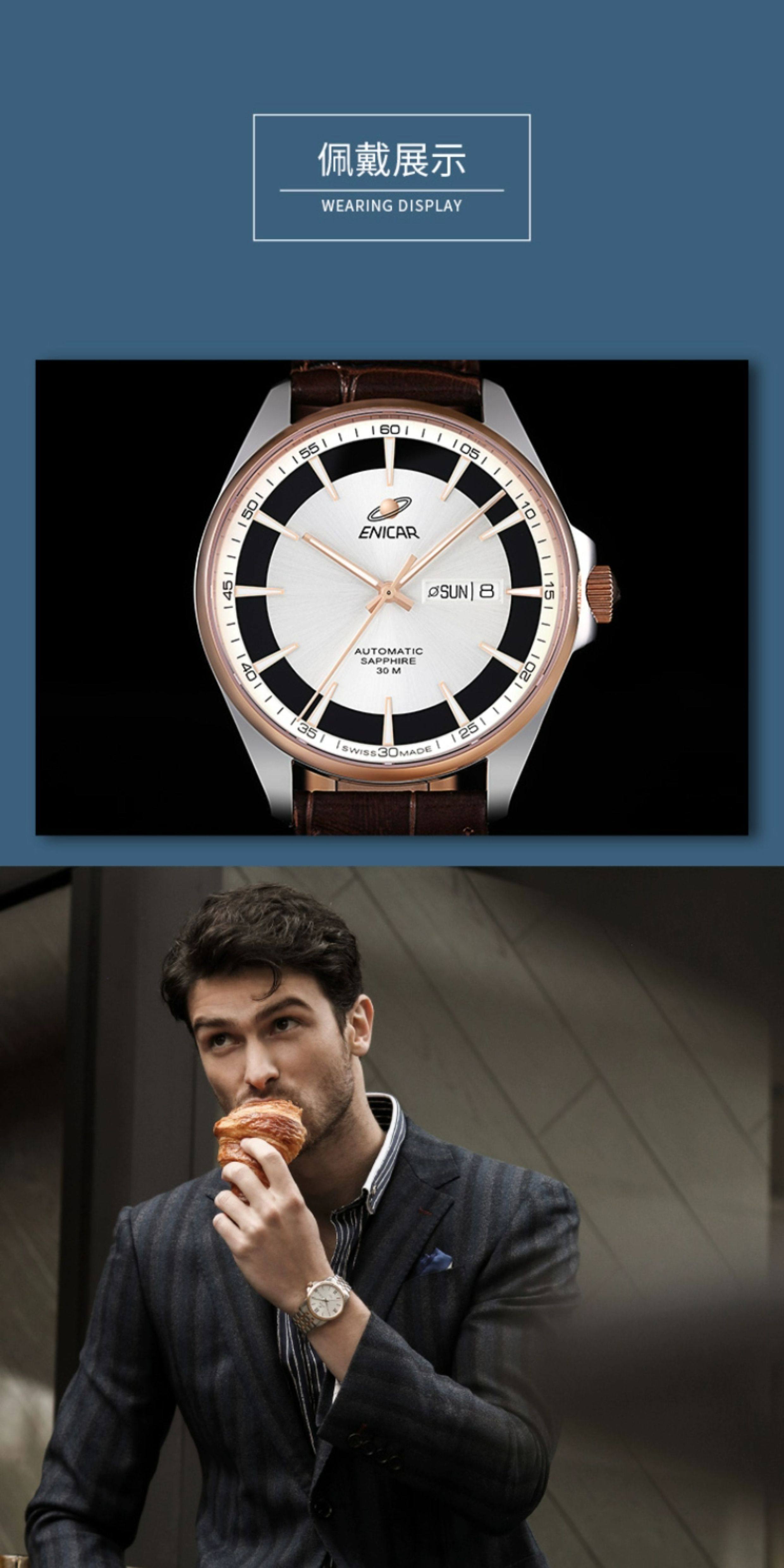 Enicar Swiss Inag Watch Blue Series New Automatic Mechanical Watch Leather Strap Men's Watch