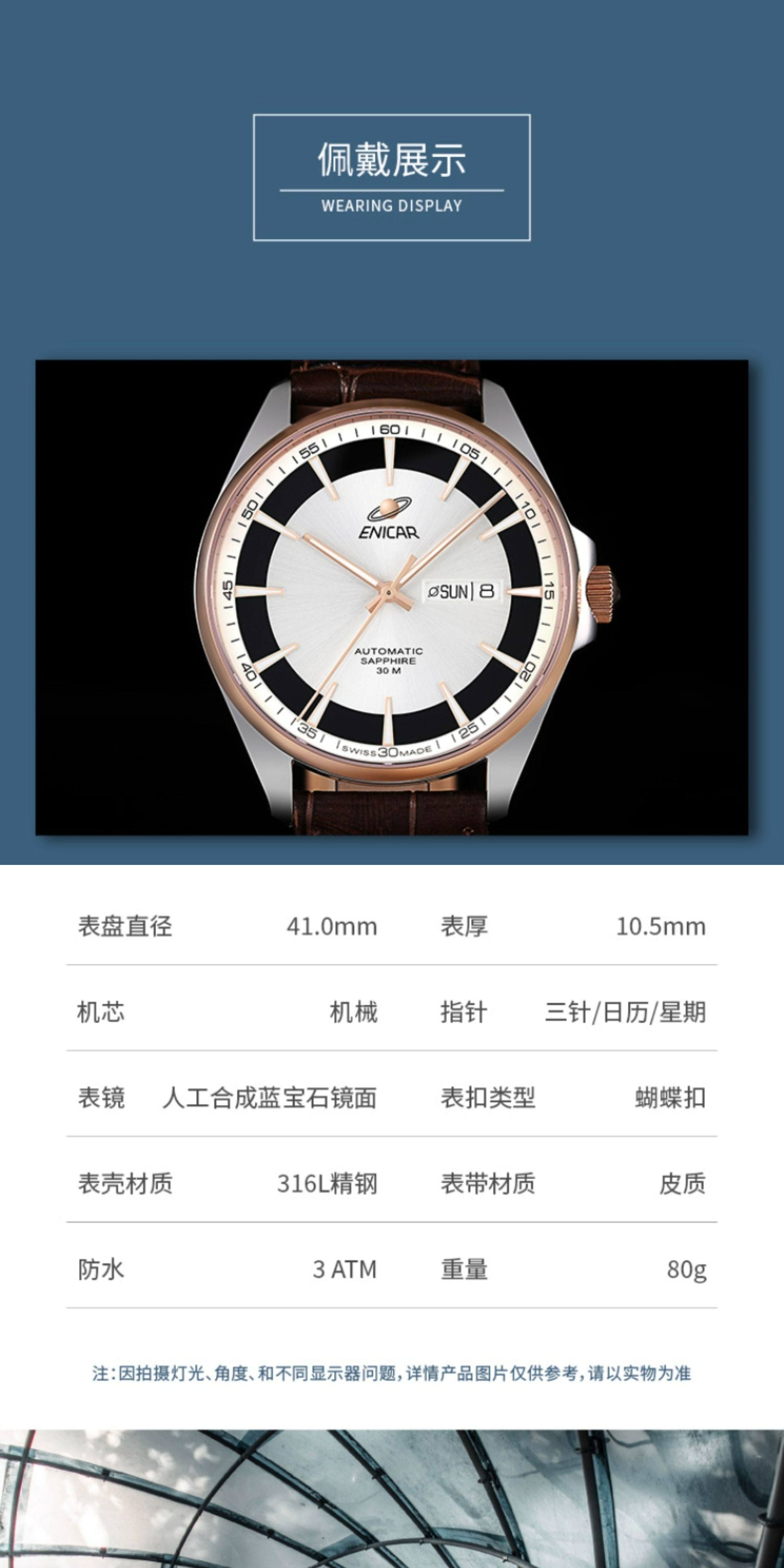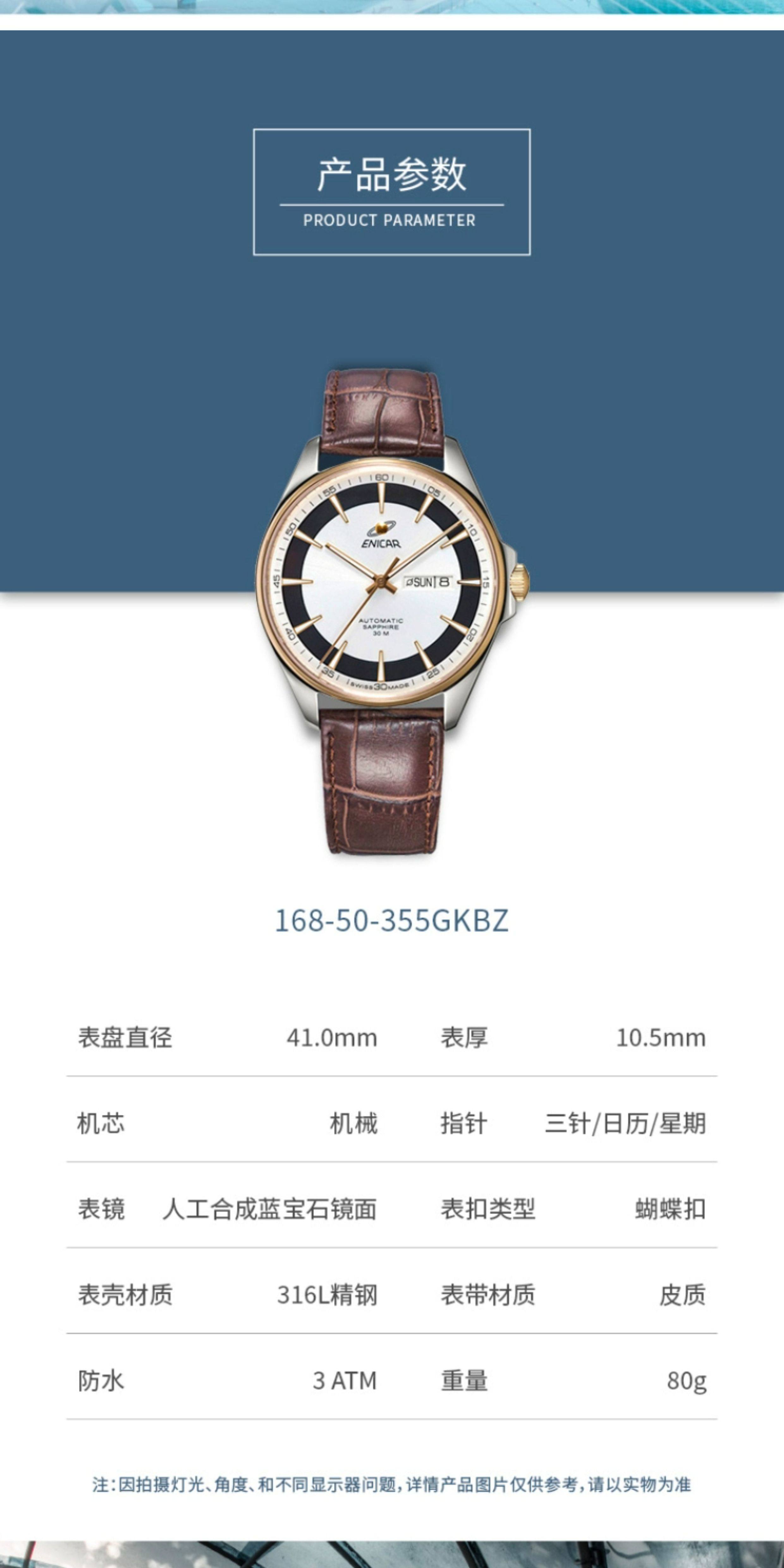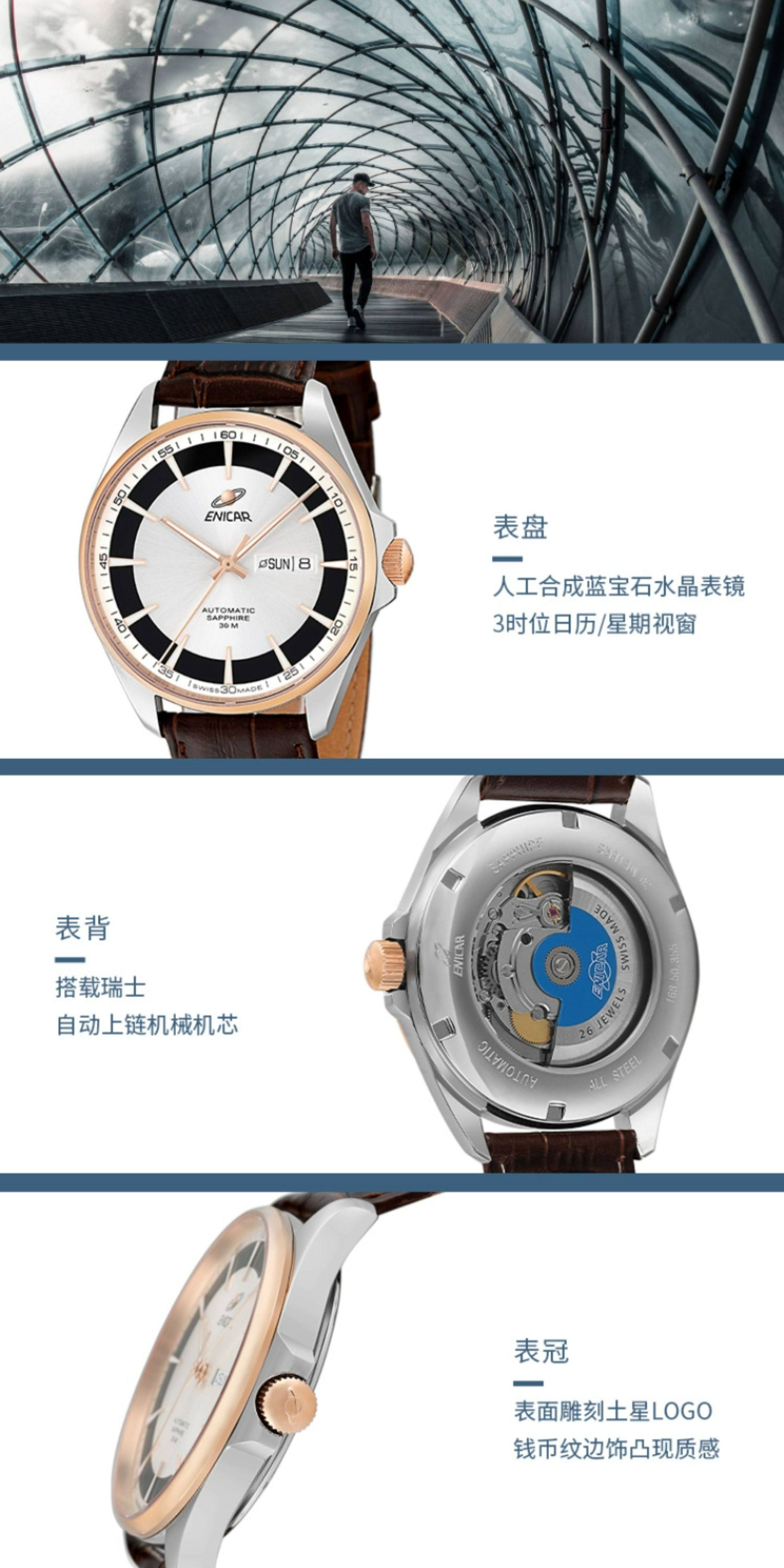 Enicar Swiss Inag Watch Blue Series New Automatic Mechanical Watch Leather Strap Men's Watch