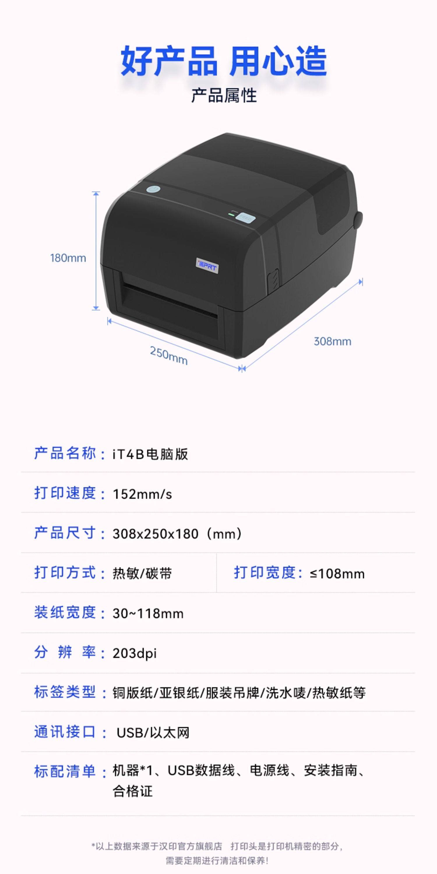 Hanyin It4B Ribbon Label Barcode Printer, One Machine for All, Clothing Hang Tags, Wash Labels, Barcode Coated Paper, Silver Paper, Price Express Barcode, Self-Adhesive Thermal Transfer Label Printer