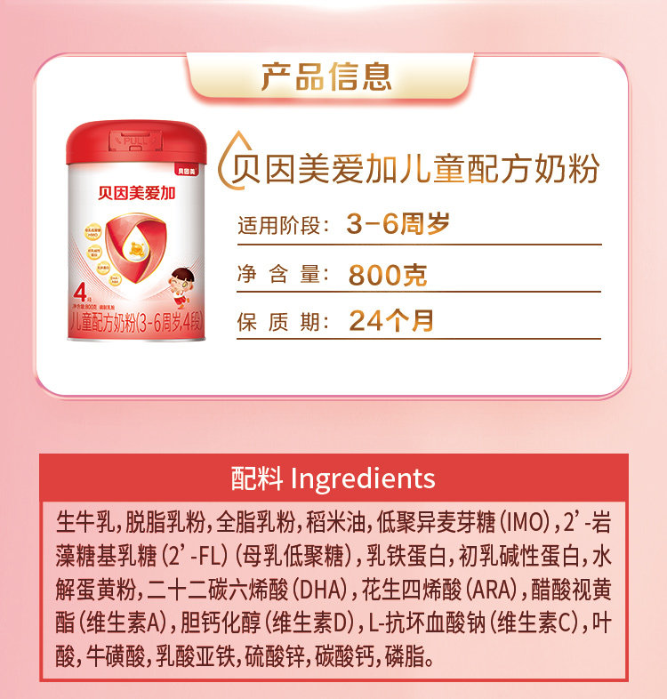 Beingmate Aijia Children's Growth Stage 4 Nutritional Milk Powder Lactoferrin 800g 6 Cans Official Lactoferrin