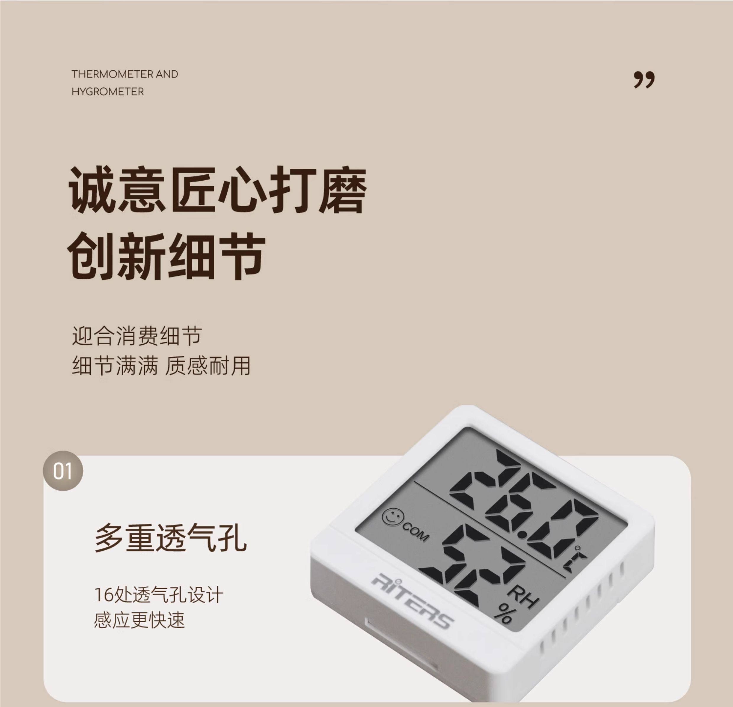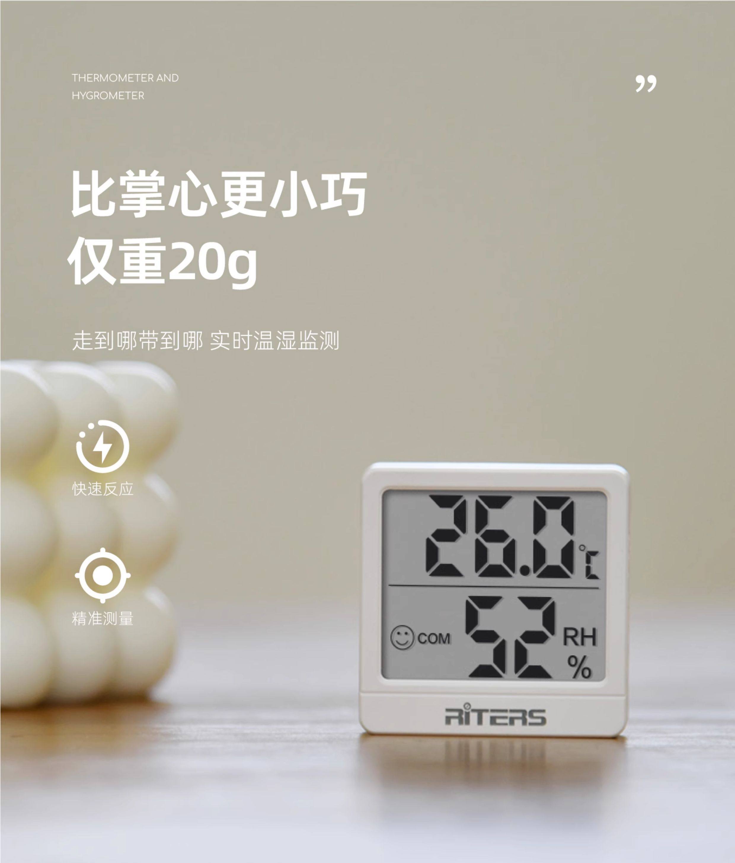 Rites Electronic Temperature and Humidity Meter for Home Use, High-Precision Mini Portable Thermometer, Accurate Refrigerator Digital Display Meter