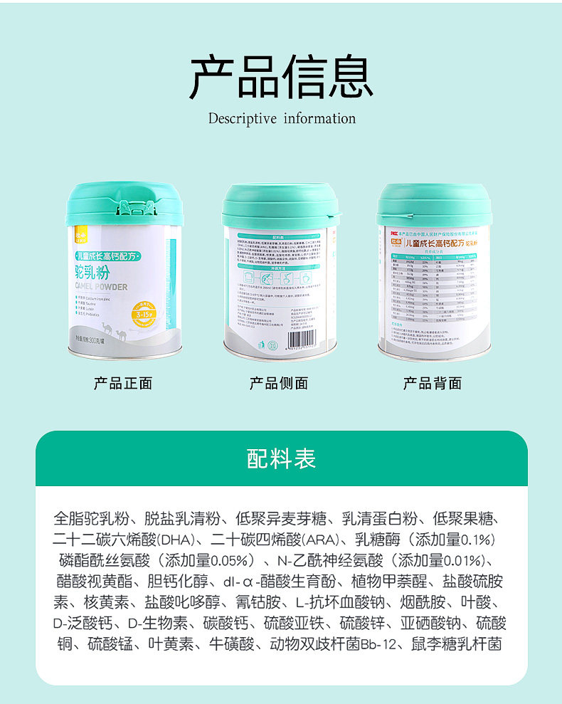 | Product Name | Children's Growth High Calcium Formula Camel Milk Powder |