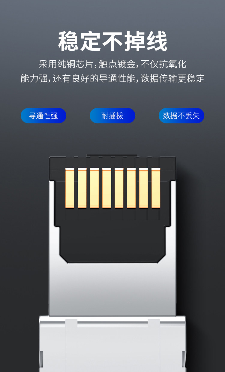 Category 6, 7, and 8 Strain-Free Crystal Head Household Shielded Cat8 10Gbps Rj45 Network Cable Connector Module