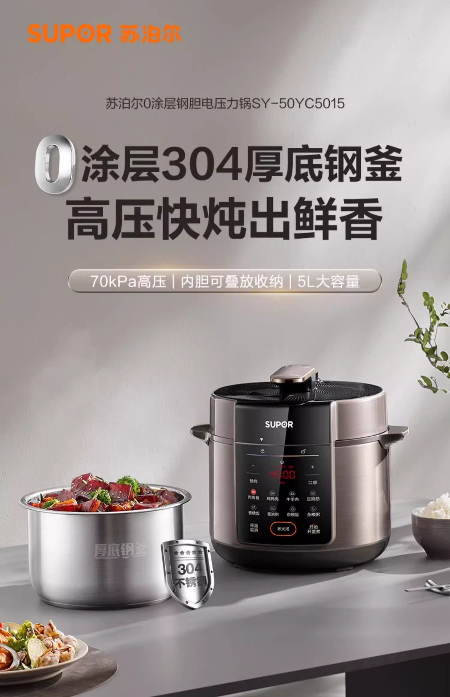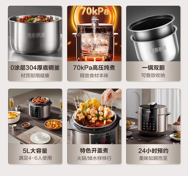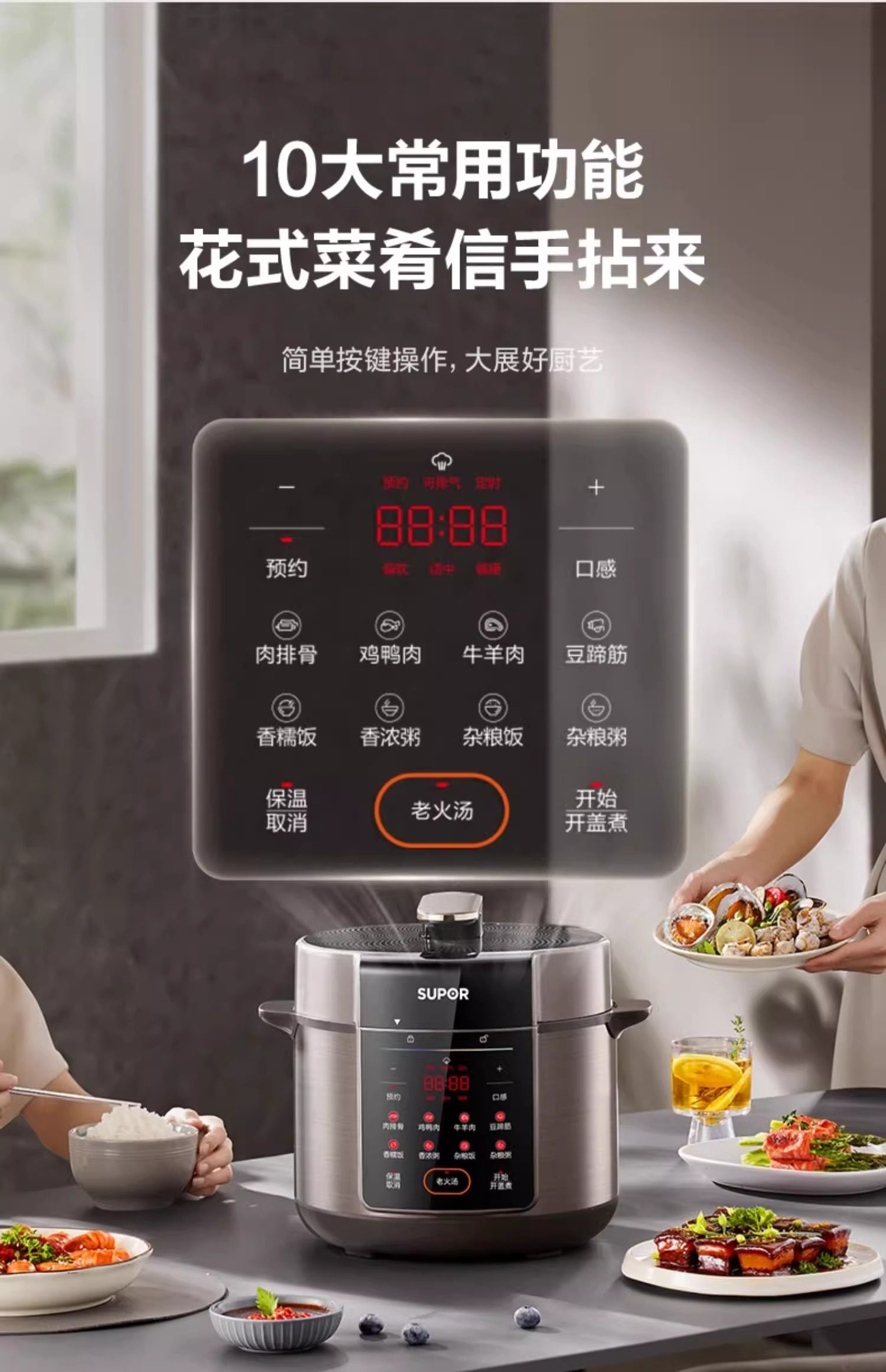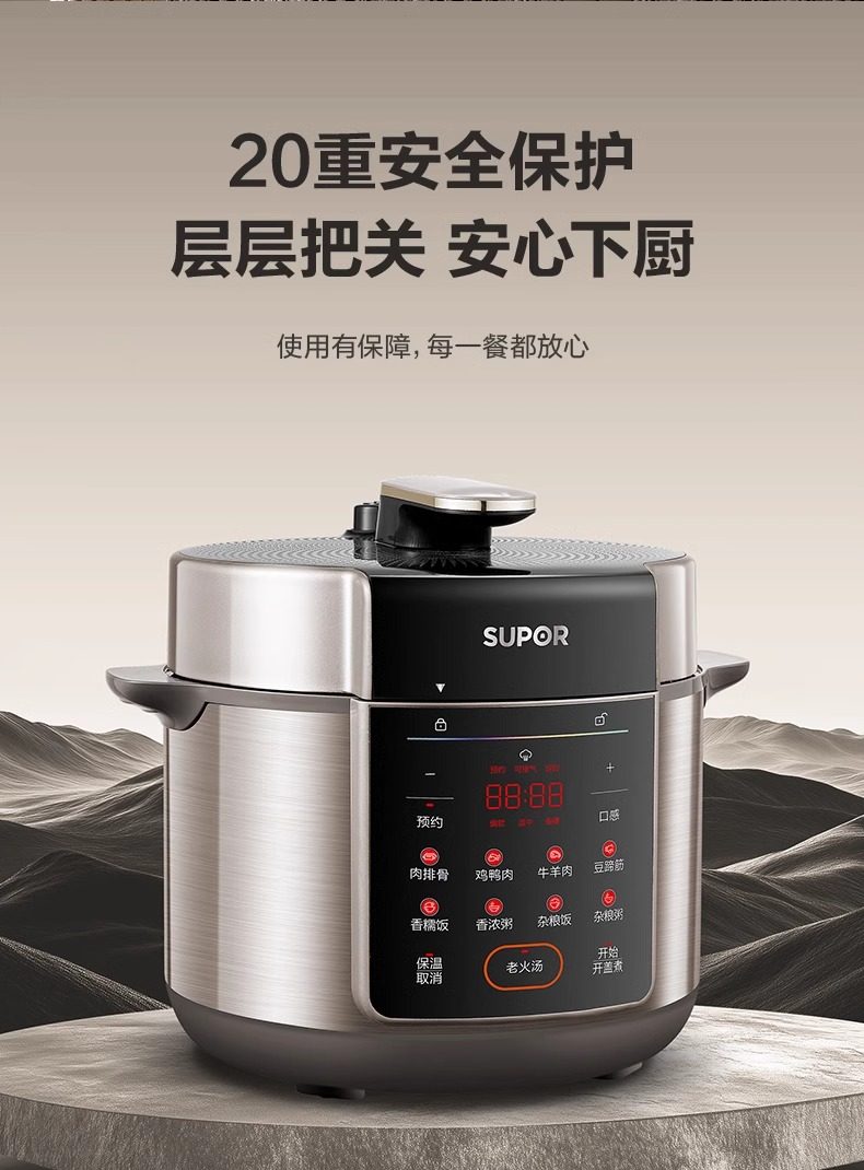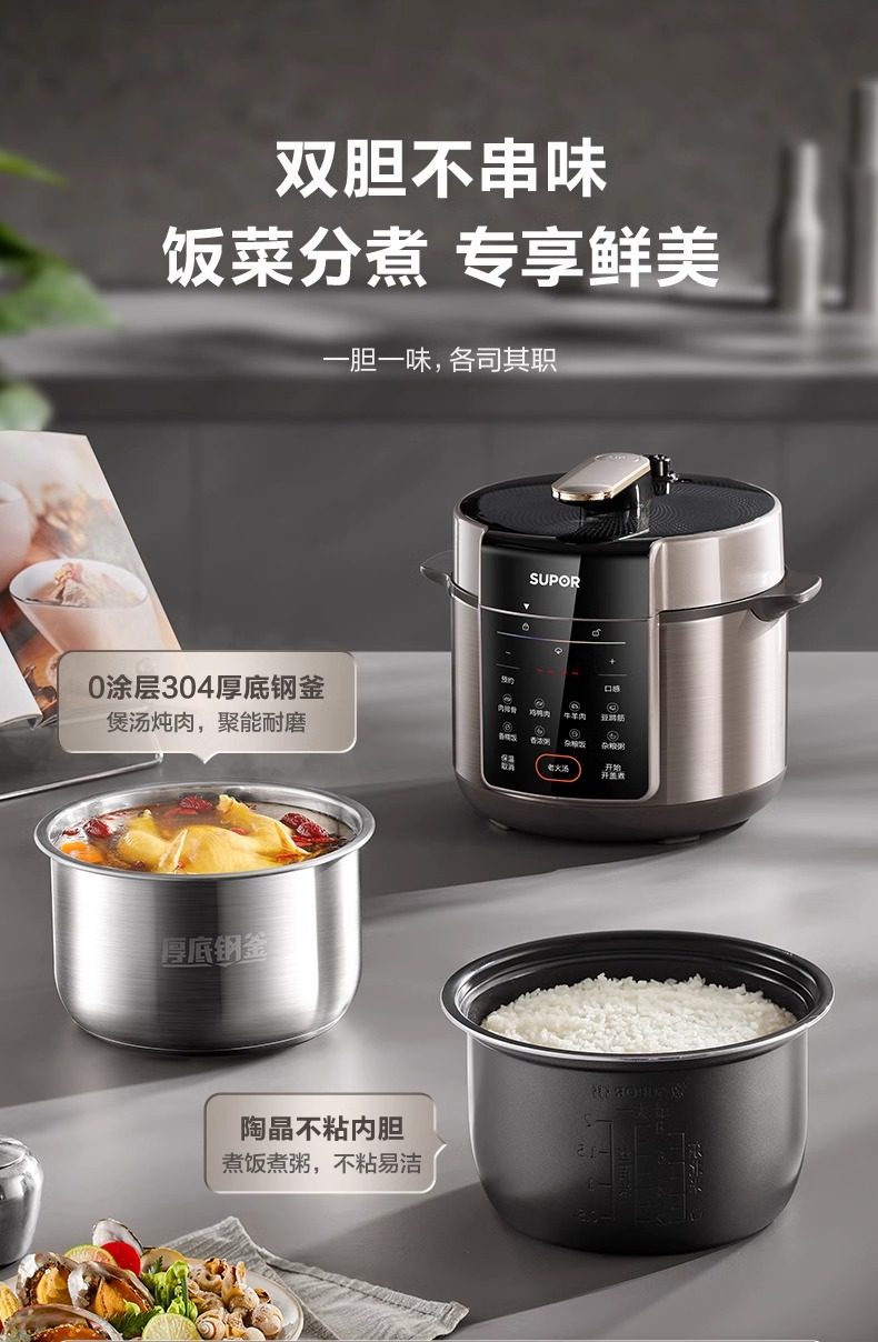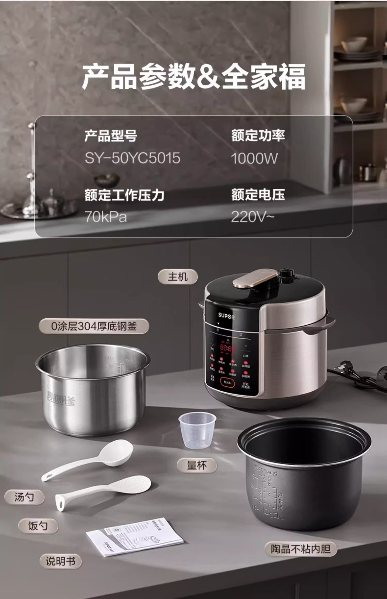Supor 0-Coating Electric Pressure Cooker Household 5L Rice Cooker Pressure Cooker Two-In-One 2025 New Model Official Genuine Product