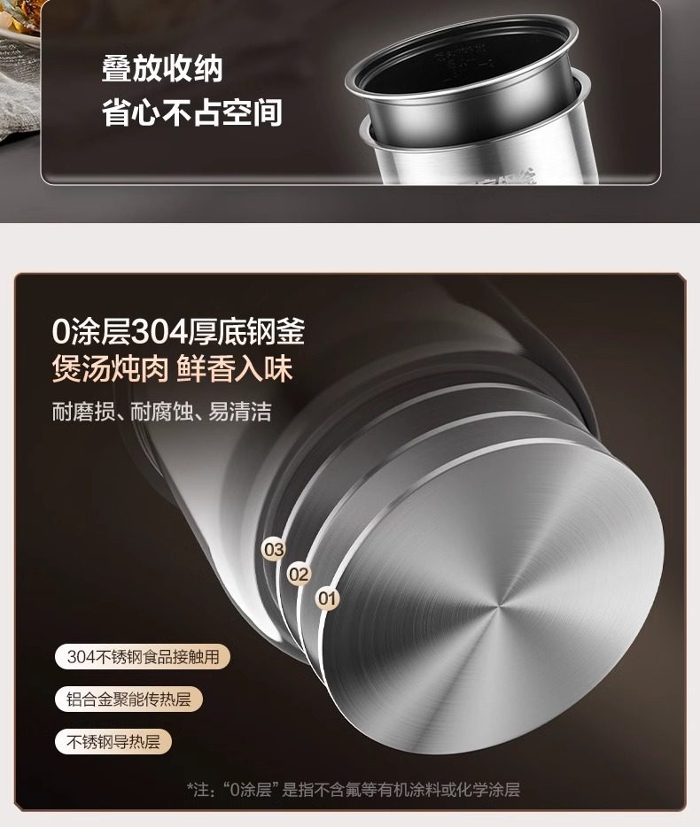 | Color Classification | Silver [5L 0-Coated Steel Liner + Ceramic Crystal Liner],Purple [Deep Soup Style* Soaked and Stewed],Purple [with 18cm Stainless Steel Stand-Up Steaming Tray*2, Dual-Purpose for Steaming and Cooking],Gold [New Style Recommendation],Mu Yun Zi [4L Capacity + with Ceramic Liner*1] |