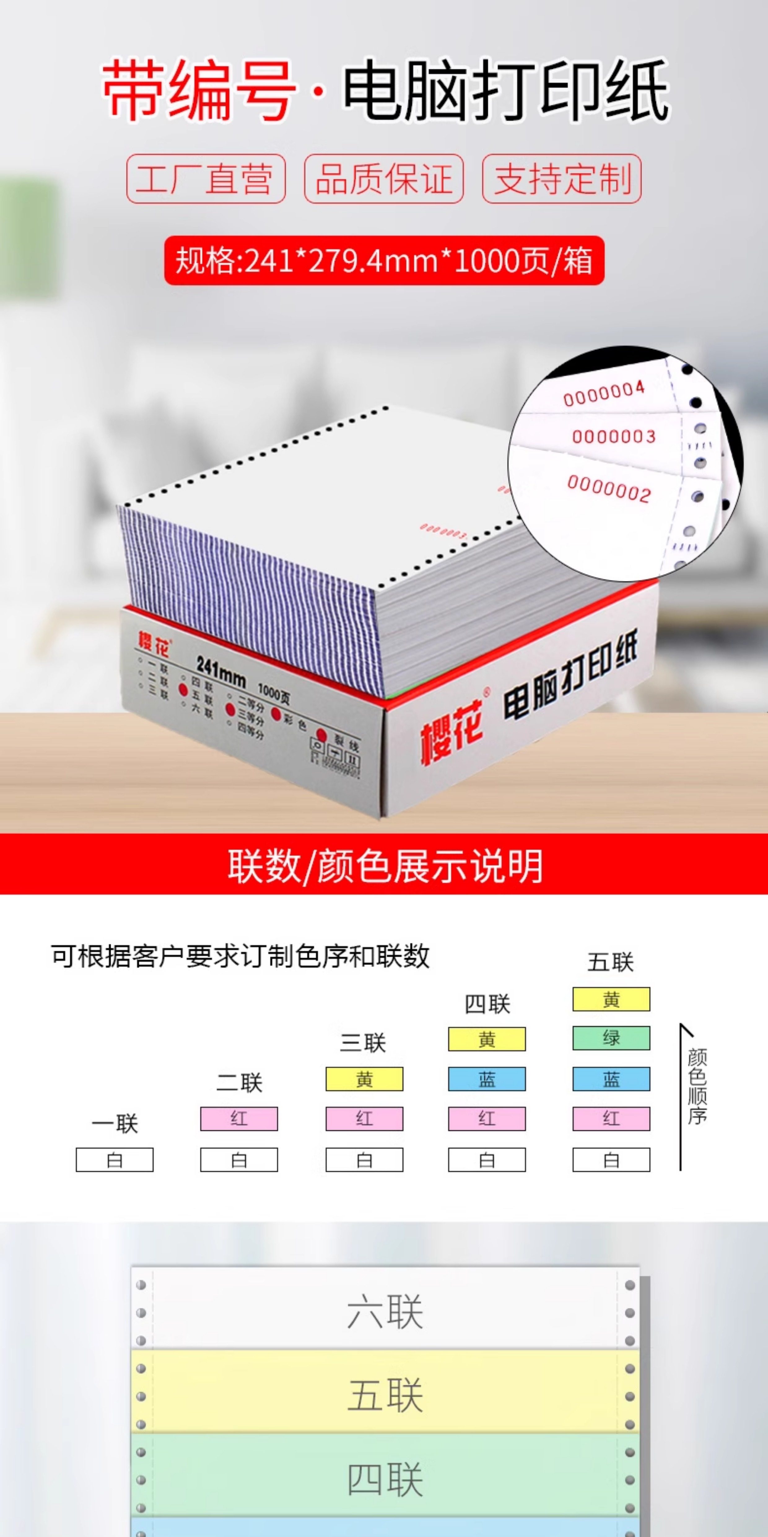 | Color Classification | Please Contact Customer Service for the Next Number. Personalized Products Are Non-Refundable and Non-Exchangeable (10 Boxes),Two-Page, 1000-Page, Numbered (10 Boxes),Two-Part, Two-Fold, 1000-Page Numbered Forms (10 Boxes),Two-Part, Three-Part, 1000-Page Numbered Forms (10 Boxes),Triple Sheets of 1000 Pages with Numbers (10 Boxes),Three-Fold, Two-Part, 1000-Page, Numbered (10 Boxes),Triple Partitioned 1000 Pages with Numbering (10 Boxes),Quadruple, 1000-Page, Sequentially Numbered (10 Boxes),Quadruple, Two-Part, 1000-Page, Numbered (10 Boxes),Quadruple Three Equal Parts 1000 Pages with Numbers (10 Boxes),Five-Ply, 1000-Page, Pre-Numbered Booklets (10 Boxes),Five-Ply, Two-Part, 1000-Page Numbered Forms (10 Boxes),Five-Ply, Three-Part, 1000-Page Numbered Labels (10 Boxes),Six-Part, Two-Fold, 1000-Page Numbered Book (10 Boxes),Six-Part, Three-Equal-Section, 1000-Page, Numbered (10 Boxes),Two-Part, Two-Fold, 1000-Page Numbered Book (5-Box Set),Two-Part, Three-Part, 1000-Page, Numbered (5-Box Set),Triple Fold, Two-Part, 1000-Page, Numbered (5-Box Pack),Triple Partitioned 1000 Pages with Numbering (5 Boxes),Quadruple, Two-Part, 1000-Page, Numbered (5 Boxes),Quadruple Three-Equal Parts 1000 Pages with Numbering (Packed in 5 Boxes),Five-Ply, Two-Part, 1000-Page Numbered Forms (5 Boxes Per Pack),Five-Ply, Three-Part, 1000-Page Numbered Labels (5 Boxes Per Pack),Six-Part, Two-Fold, 1000-Page Numbered Book (5-Box Set) |