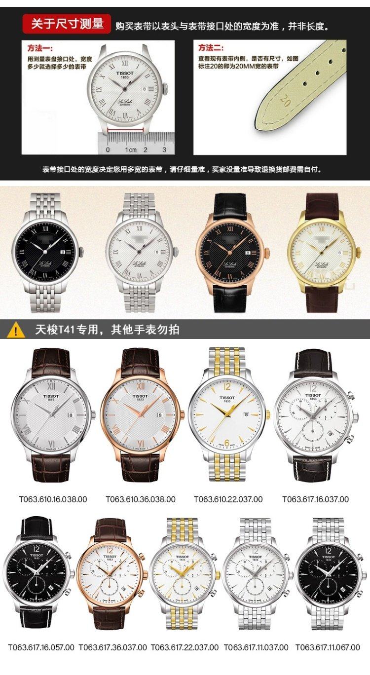 Tissot 1853 Le Locle Series T41 Original Leather Strap T006407A T006408A Original Genuine Leather Watch Strap