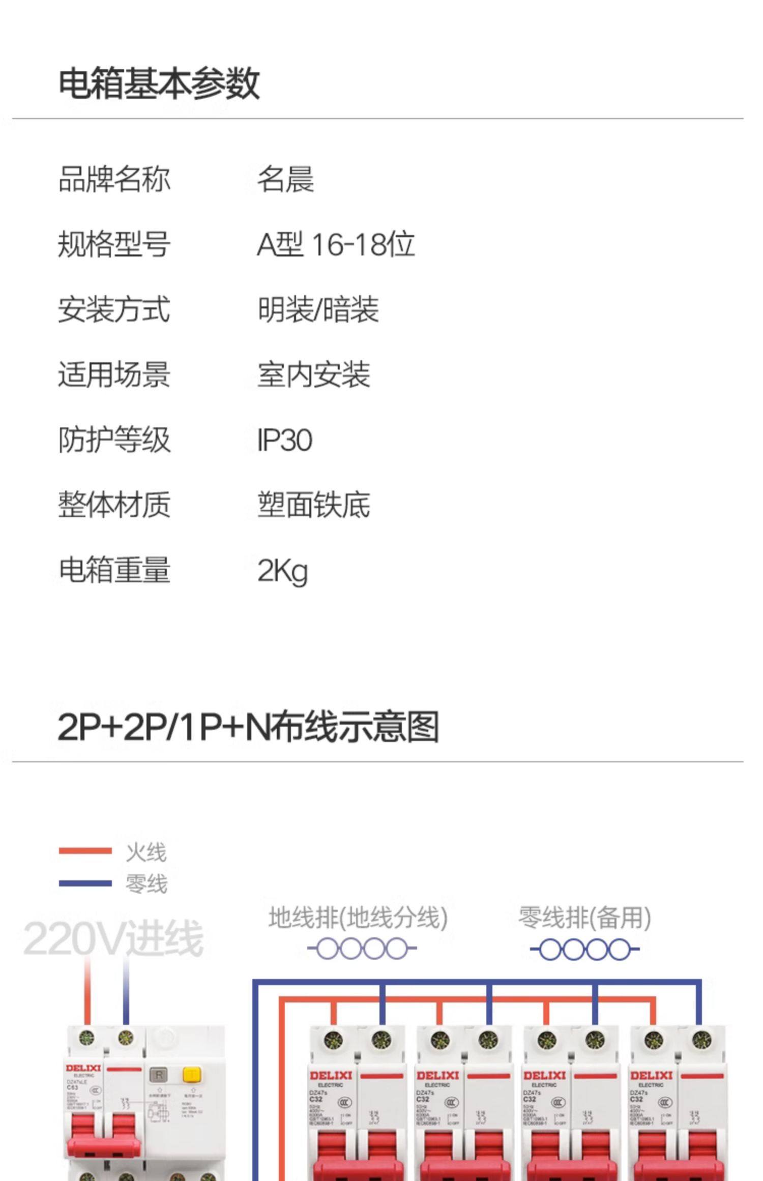 Concealed 18-Position Distribution Box Complete Set, Household Electrical Box Suitable for Delixi Leakage Circuit Breaker 2P Circuit Breaker Strong Current Box