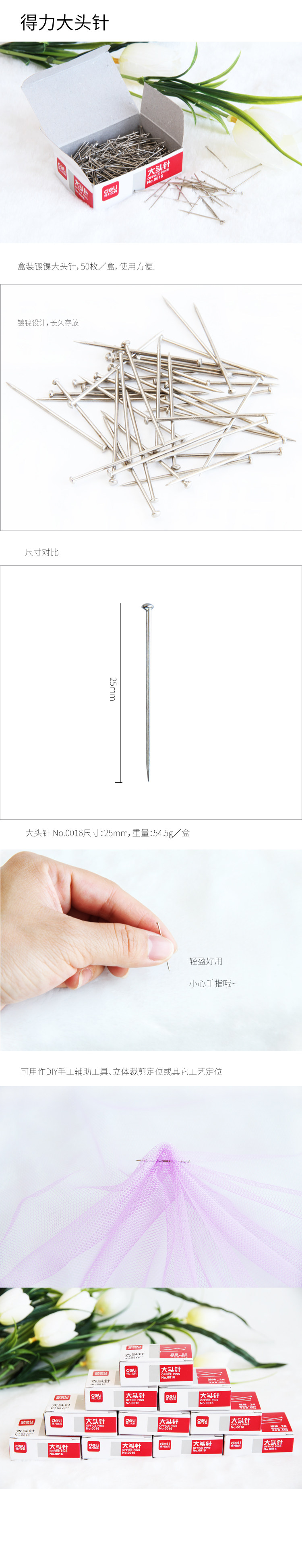 10 Boxes of Deli 0016 Push Pins, 25mm, Boxed, Metal Nickel-Plated, Office Supplies, Fixing Pins, Student Crafts, Small Accessories 2 # Clothing Pearl Needle 50G/Box