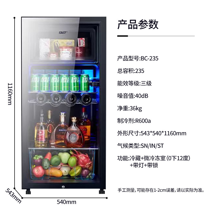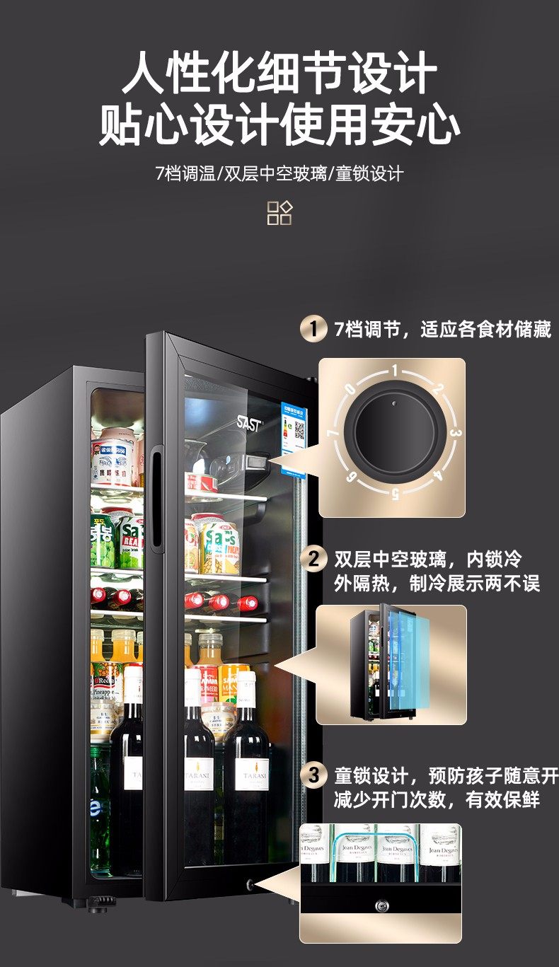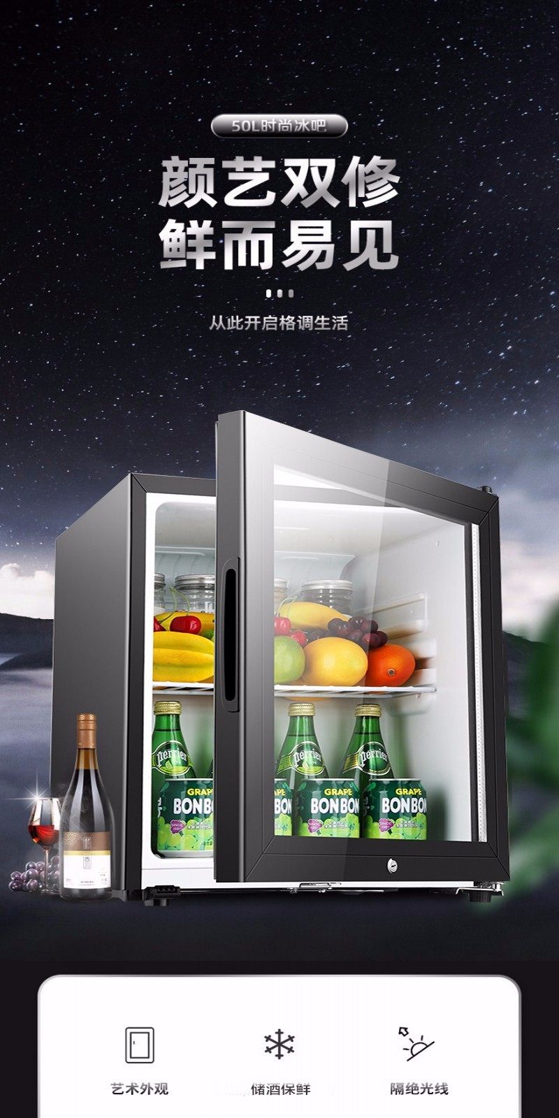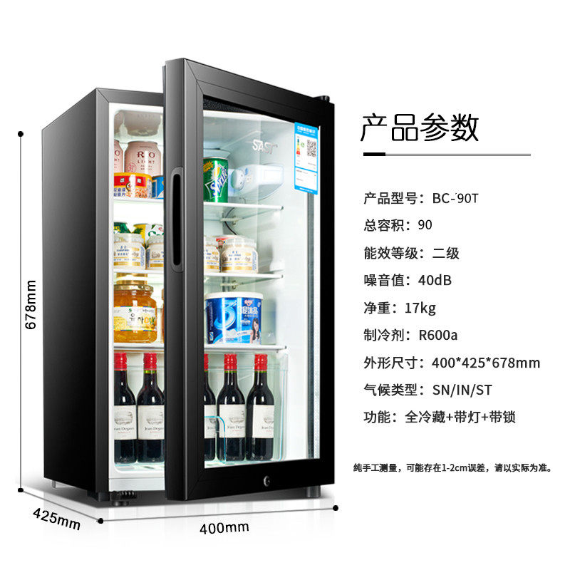 SAST Bc-50 Refrigerated and Fresh-Keeping Small Refrigerator with Transparent Glass and Lock, Ice Bar for Office, Home, Hotel
