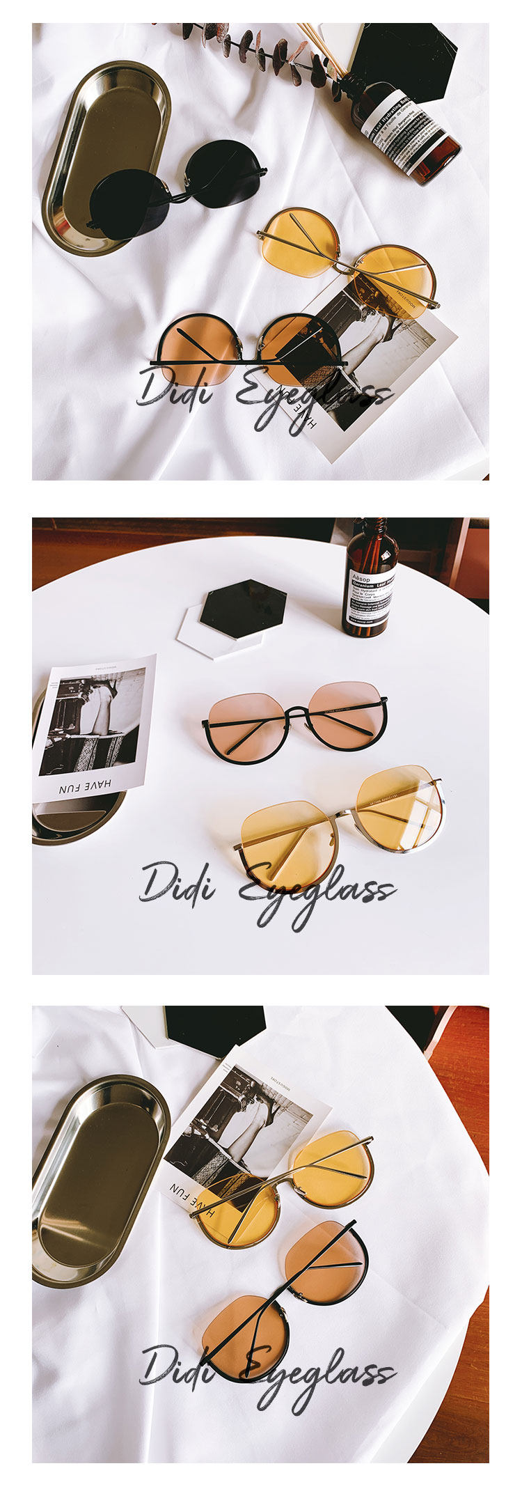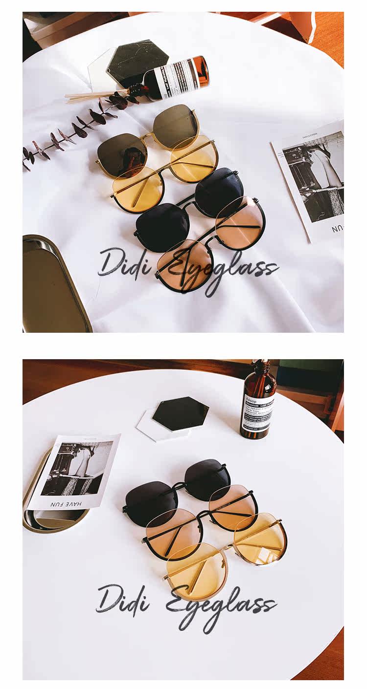 Internet Celebrity Large Round Frame Sunglasses for Women, Retro Half-Frame Brown Sunglasses, Street Style Slimming Glasses, Korean Style Trendy