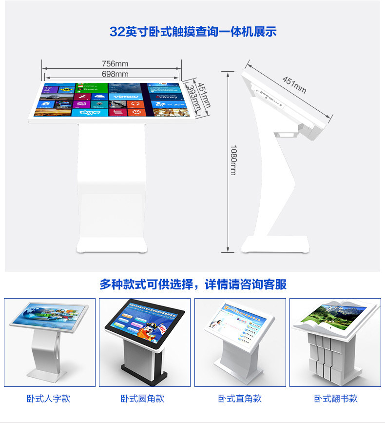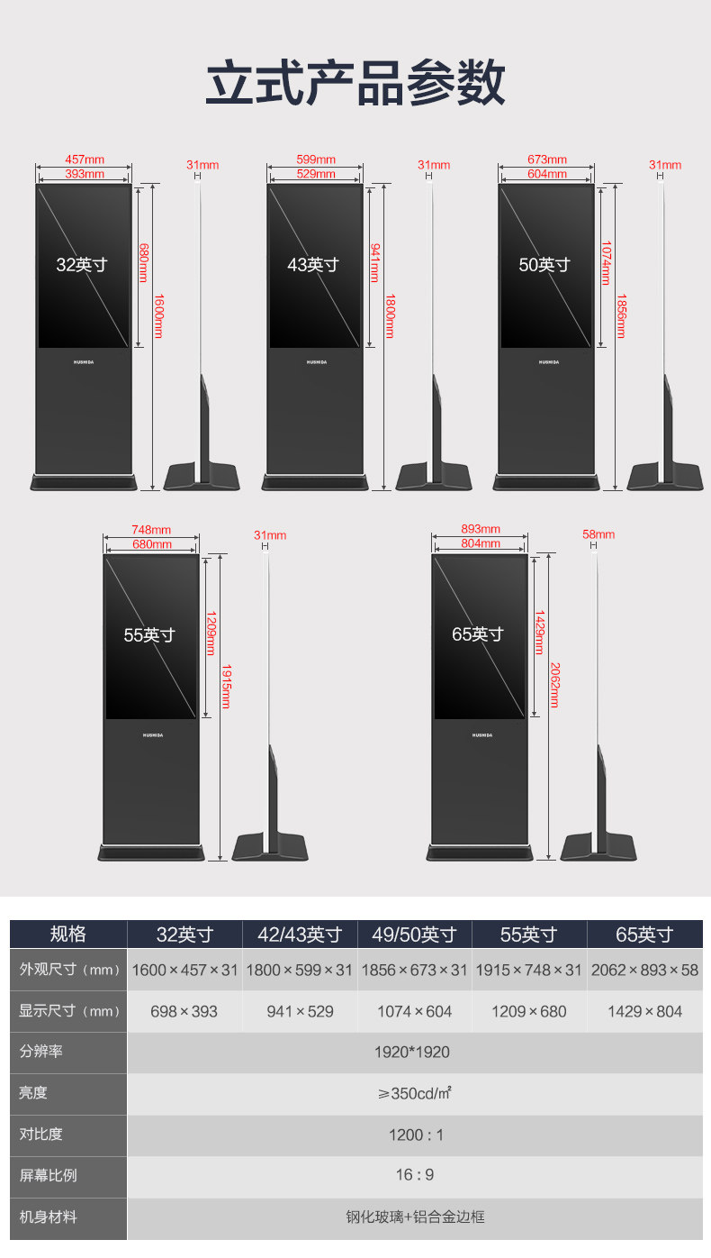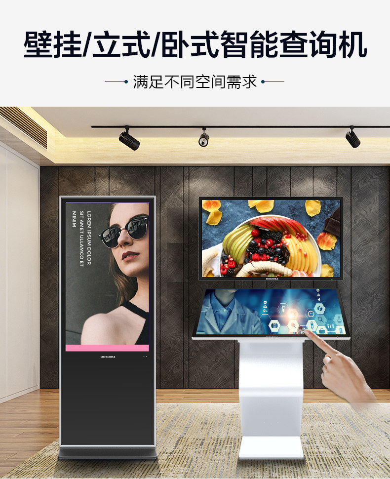 Hushida 32/42/50/55/ 65inch Horizontal Touch Screen Self-Service Inquiry Machine All-In-One Computer Floor-Standing Multimedia Vertical Advertising Player Lcd Screen Wall-Mounted Monitor