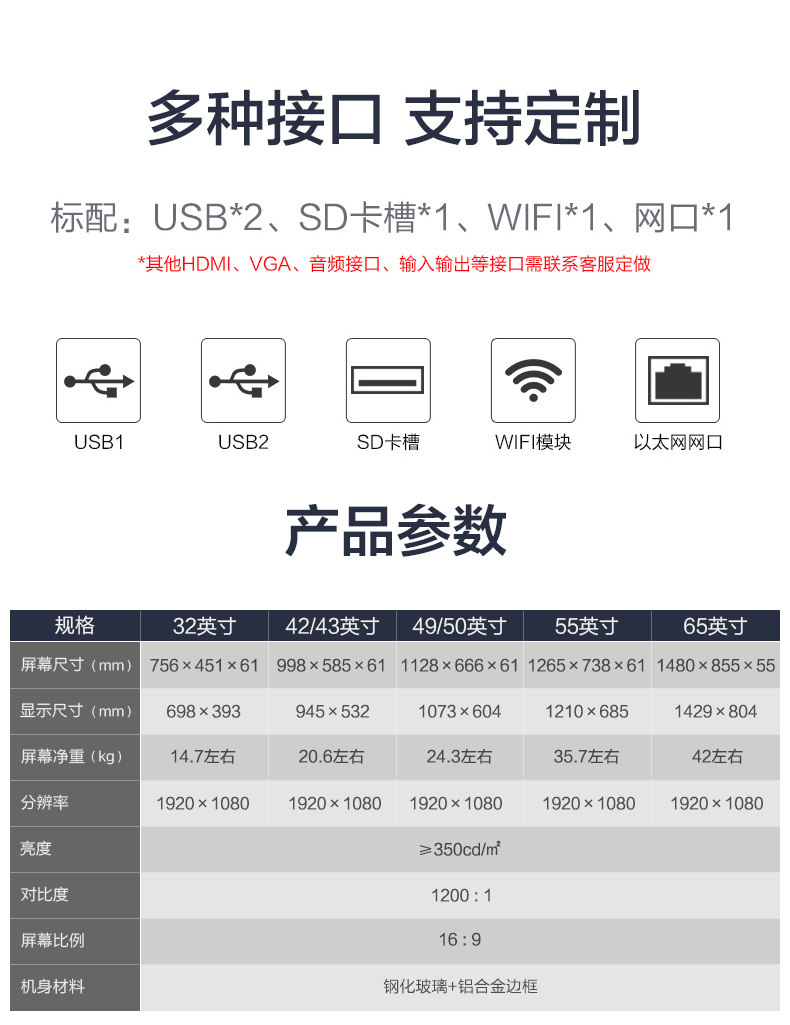 | Color Classification | 32inch Android Version (Horizontal),32inch I5/8G/128G (Horizontal),32inch I7/8G/128G (Horizontal),43inch Android Version (Horizontal),43inch I5/8G/128G (Horizontal),43inch I7/8G/128G (Horizontal),50inch Android Version (Horizontal),50inch I5/8G/128G (Horizontal),50inch I7/8G/128G (Horizontal),55inch Android Version (Horizontal),55inch I5/4G/128G (Horizontal),55inch I7/8G/128G (Horizontal),65inch Android Version (Horizontal),65inch I5/8G/128G (Horizontal),65inch I7/8G/128G (Horizontal) |