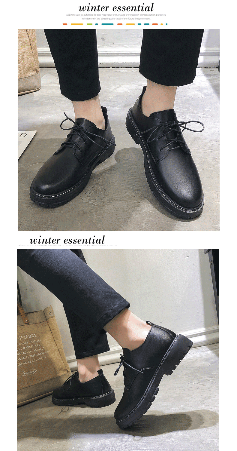 Winter British-Style Leather Shoes for Men, Casual Business Formal Wear, Breathable Large-Toe Small Leather Shoes, Korean Style Trendy Youth Round-Toe Suit Shoes