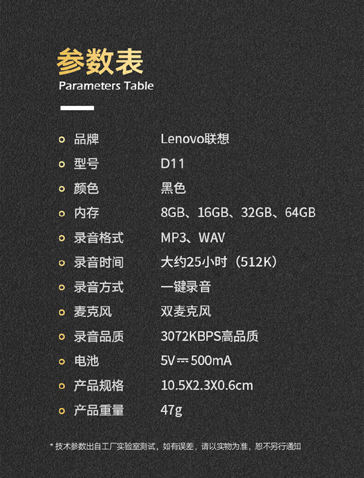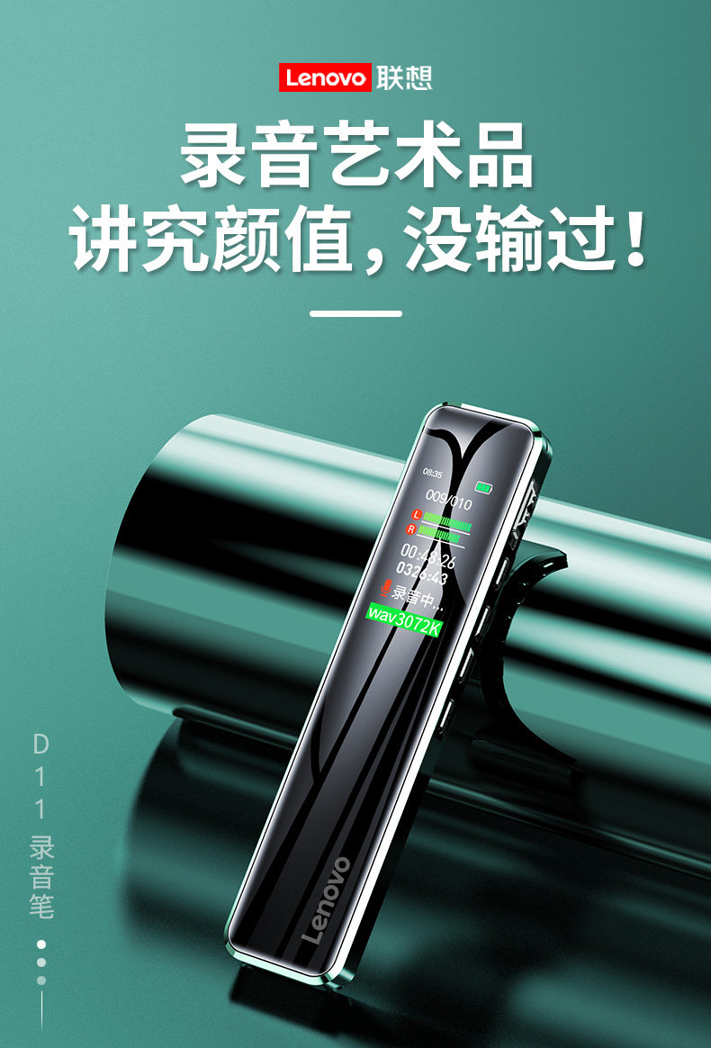 Lenovo D11 Voice Recorder, Professional High-Definition Noise Reduction, Suitable for Students, Long Standby, Portable, Converts Audio to Text