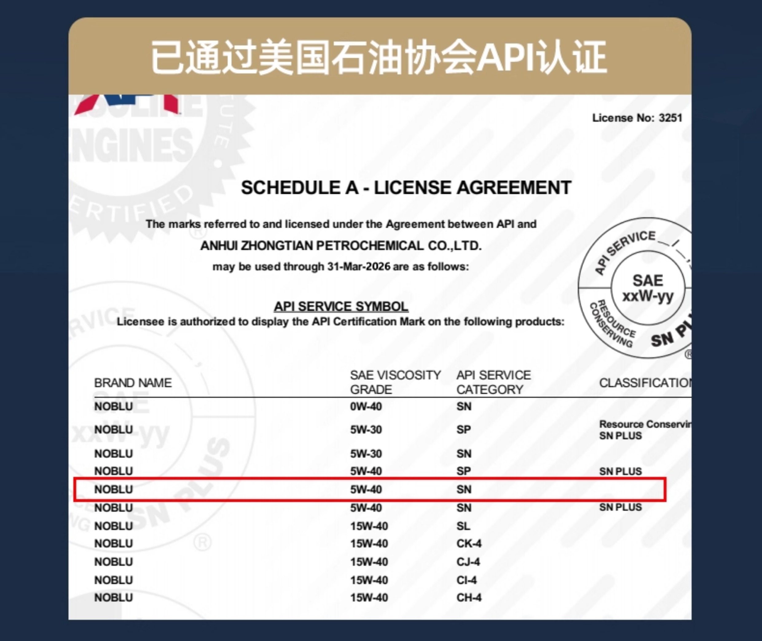 | Engine Oil Classification | Fully Synthetic Engine Oil |