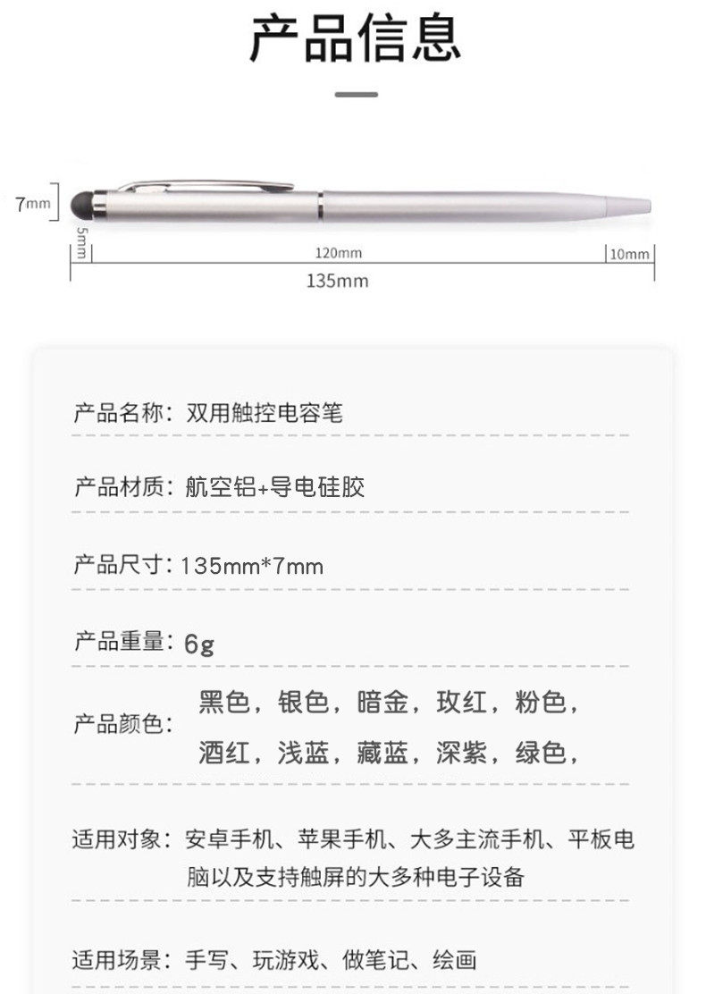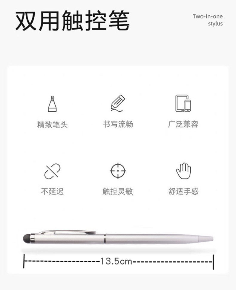 Universal Capacitive Pen for Mobile Phones and Tablets, Touch Screen Pen, Ballpoint Pen, Dual-Purpose Touch Stylus, Compatible with Android, Apple, and Huawei