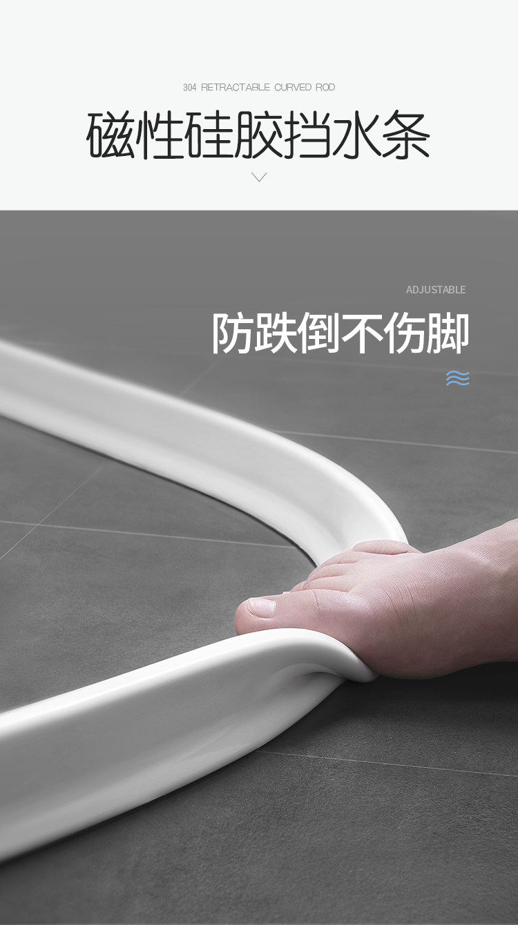 Bathroom Magnetic Waterproof Partition Strip, Bendable Shower Room Floor Water Barrier Strip, Bathroom Countertop Silicone Water Barrier Strip