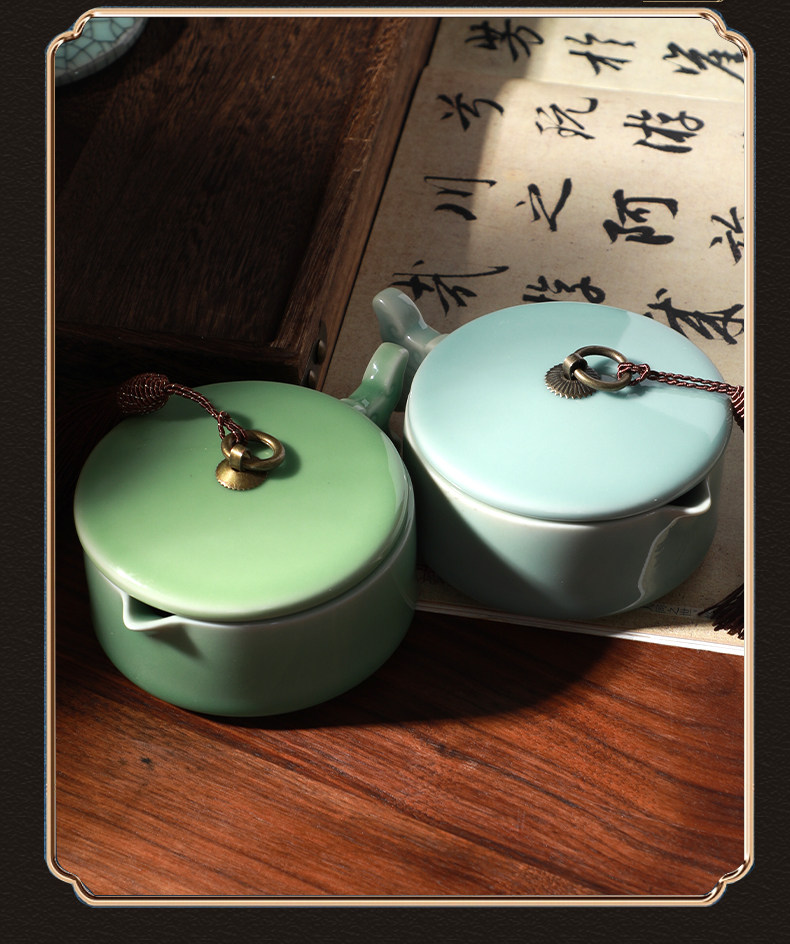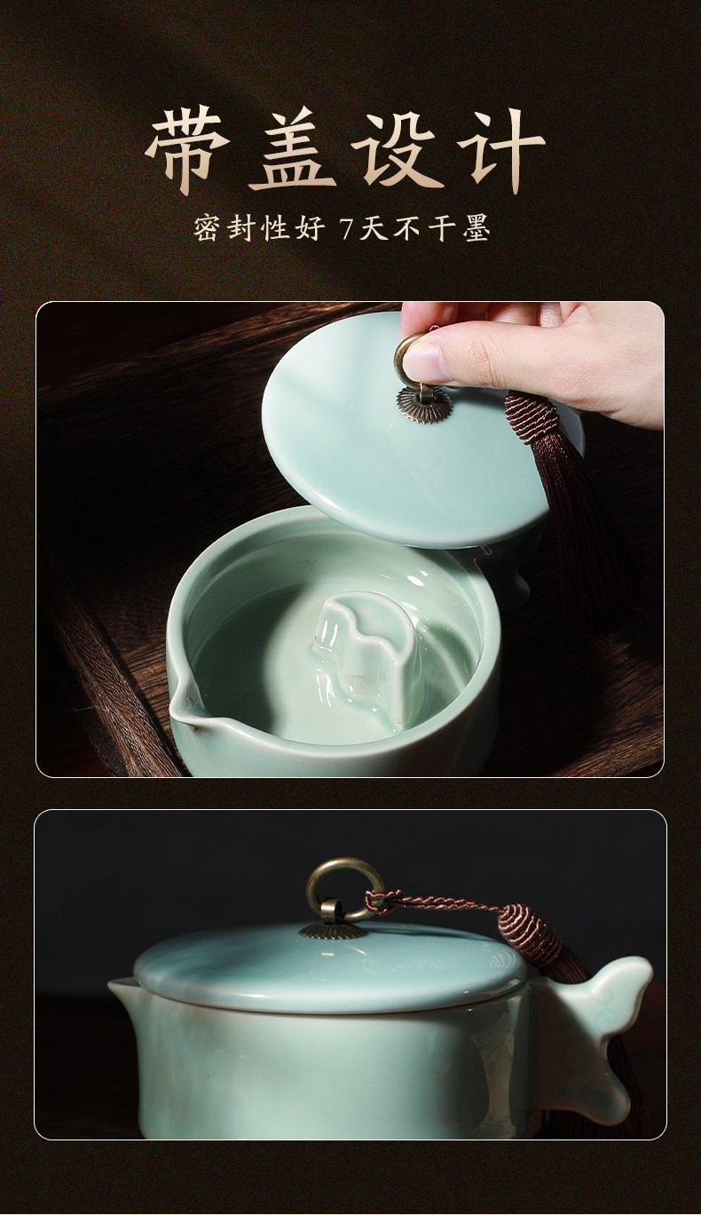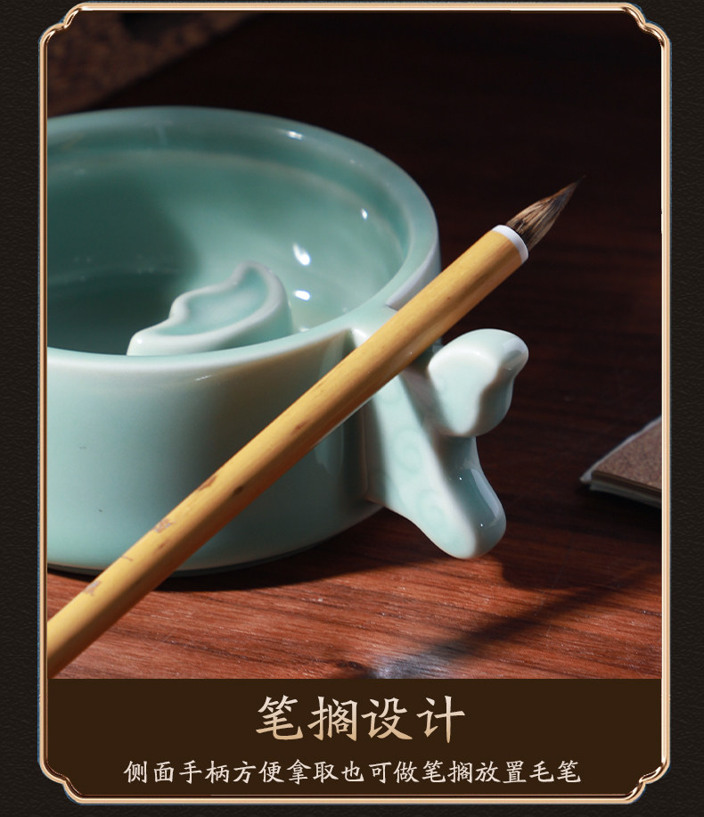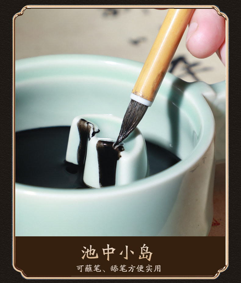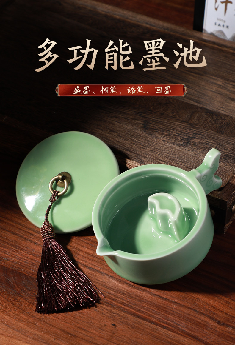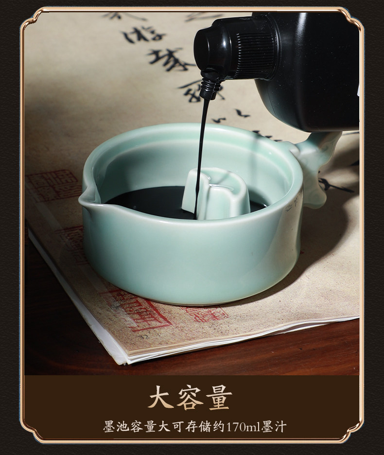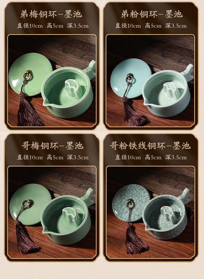 Cao Yige Ink Pool and Inkstone Multifunctional Ink Holder with Lid, Ink Dish, Pen Rest, Pen Washer, Pen Licking Dish, Ink Grinding Dish, Ge Kiln Ice Crack Pattern Copper Ring Inkstone, Ceramic Calligraphy Tools for Chinese Painting, Four Treasures of the Study