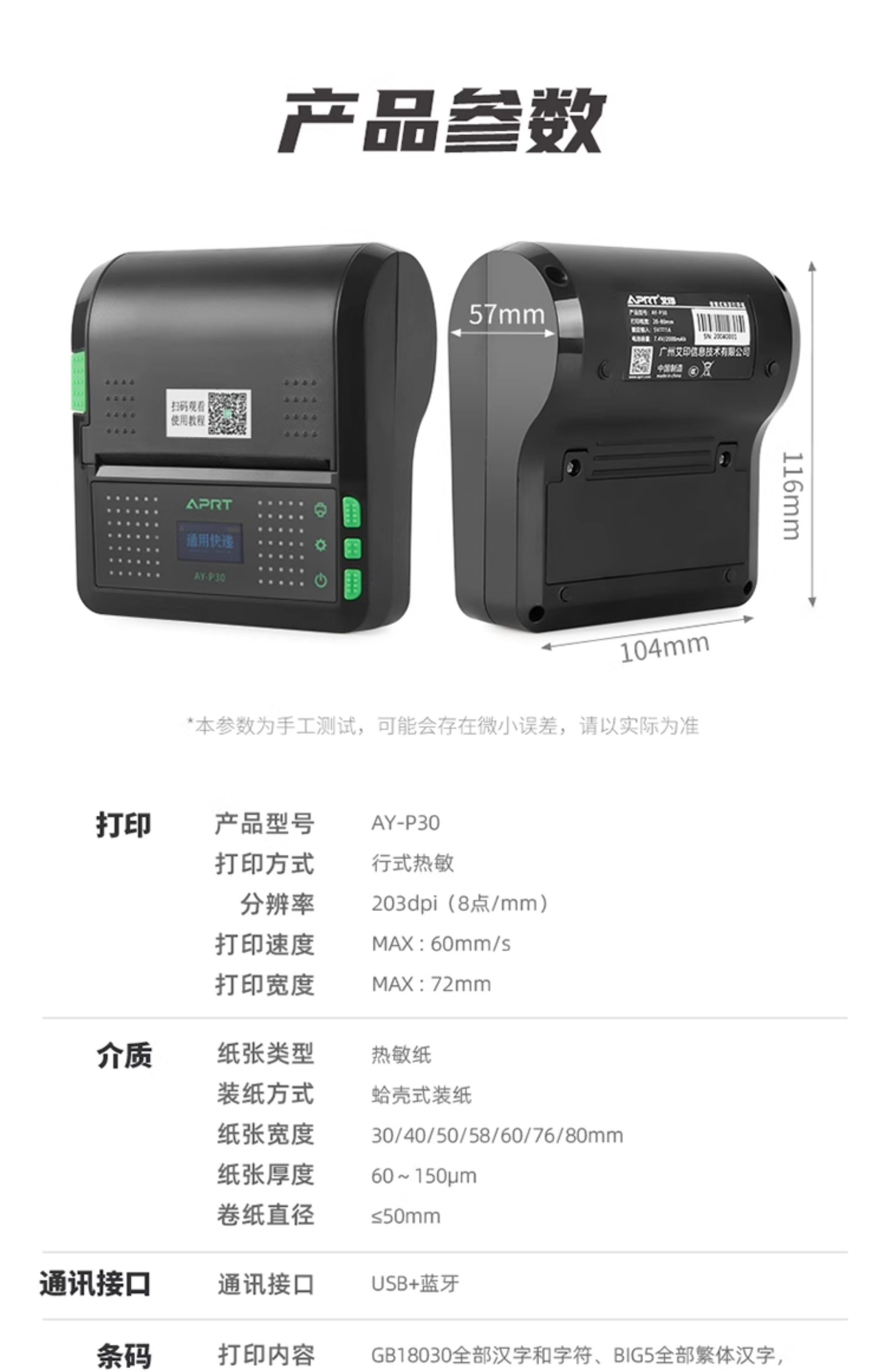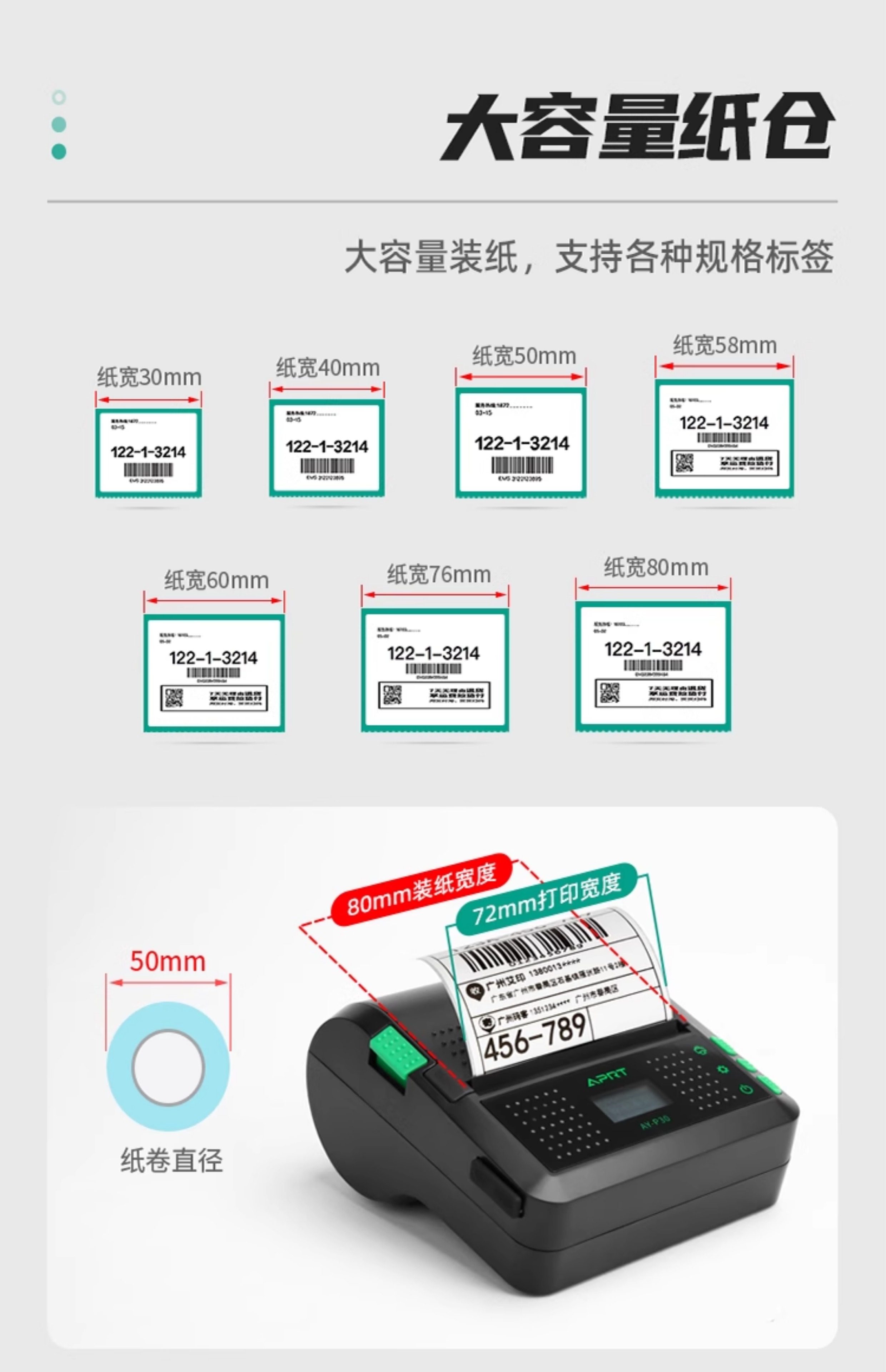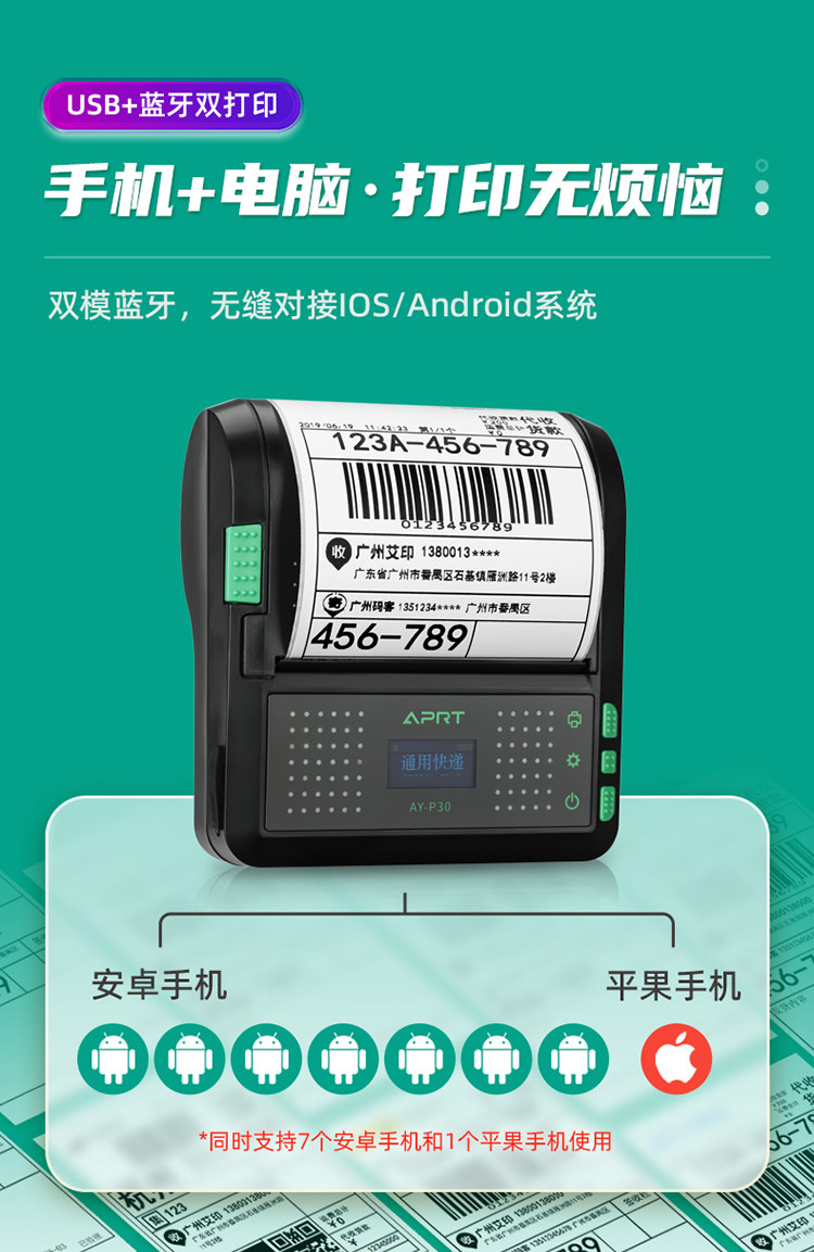 Aiyin P30 Portable Express Printer, Universal Version for Yunda, Tuxi, and Other Couriers, Compatible with Round-Shaped Zto, Shentong, and Other Delivery Stations, Label Pick-Up Code Printer, Thermal Bluetooth Order Printer for Express Delivery