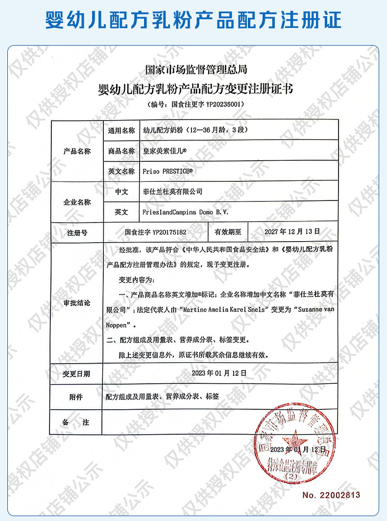 | Formula Registration Number | National Food Injection Word Yp20175182 |