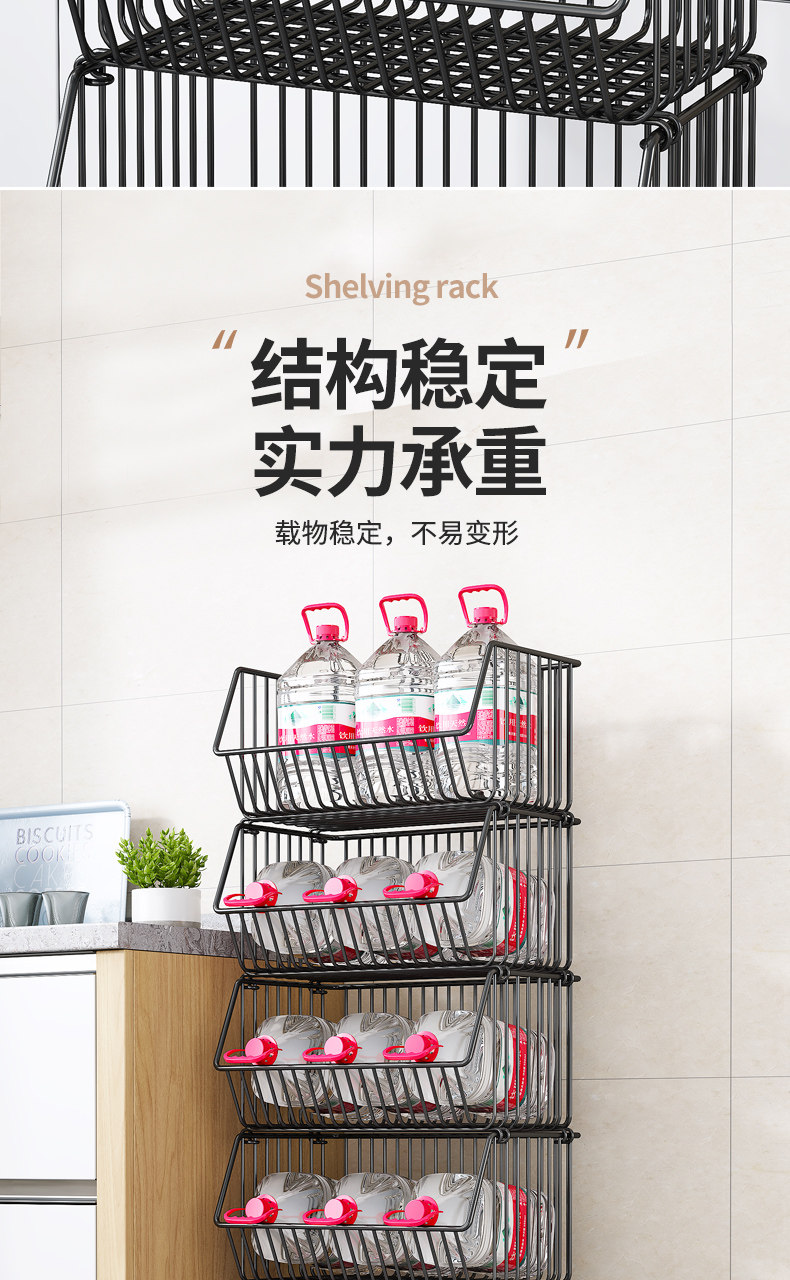 Vegetable Basket Kitchen Storage Rack, Floor-Standing Multi-Layer Fruit and Vegetable Storage Supplies, Wall-Corner Mobile Snack Cart