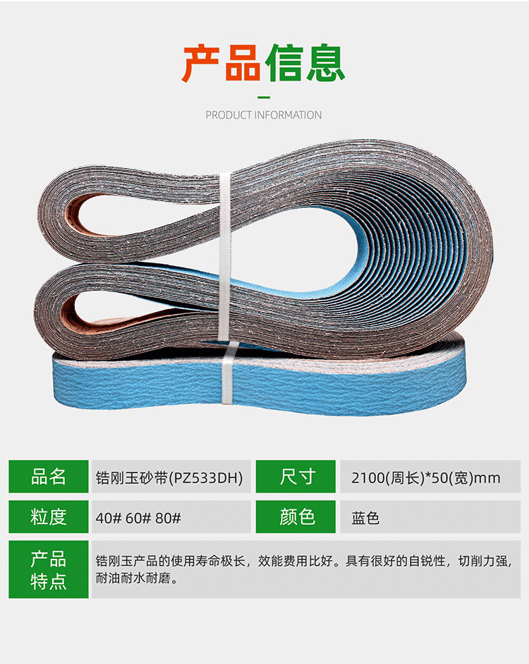 Deer Brand Sanding Belt Pz533 Zirconium Corundum Machine Sanding Cloth Belt for Metal Stainless Steel Grinding and Polishing 2100*50 Sanding Belt Strip