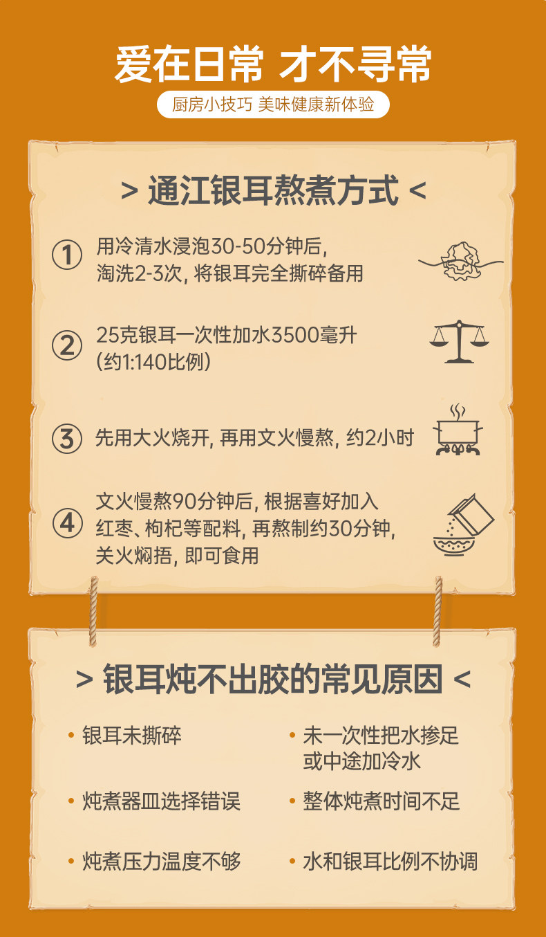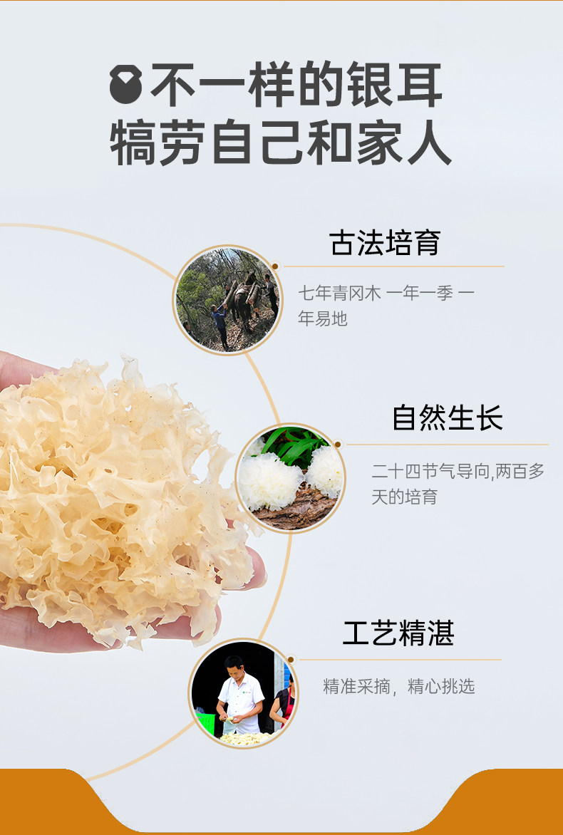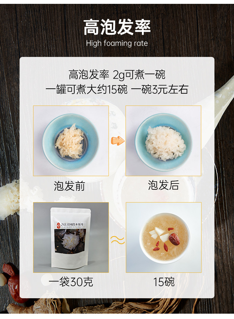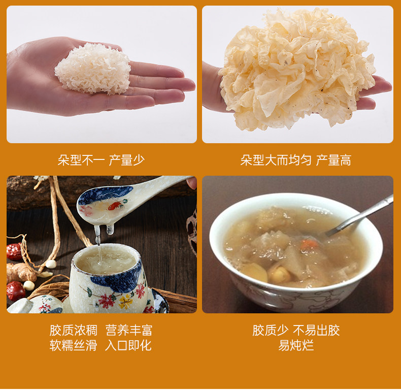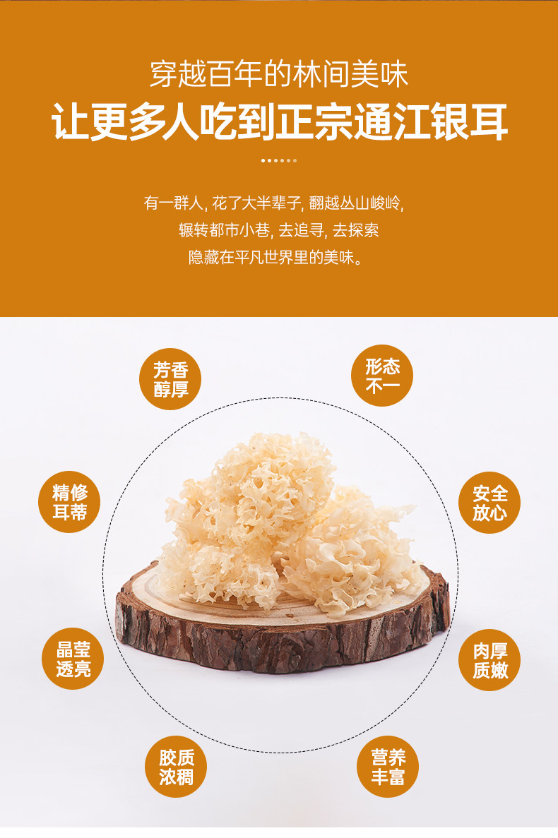 | Taste | [Tongjiang Tremella Flower] 30g,Tongjiang Tremella Flower 30g + Tongjiang Basswood Flower Mushroom 30g,Tongjiang Tremella Flower 30g + Tongjiang Basswood Black Fungus 30g,[White Fungus + Flower Mushroom + Black Fungus] 90g |